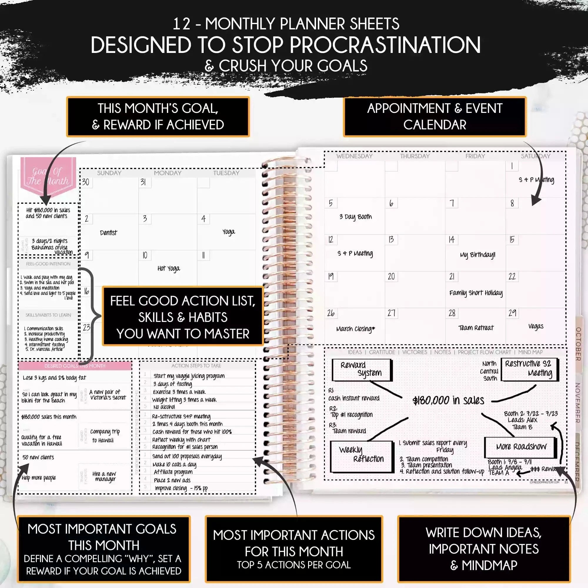 💎 NEW! Improvements in Design: Modern, chic and stylistic to make you feel proud of owning and utilizing the planner.