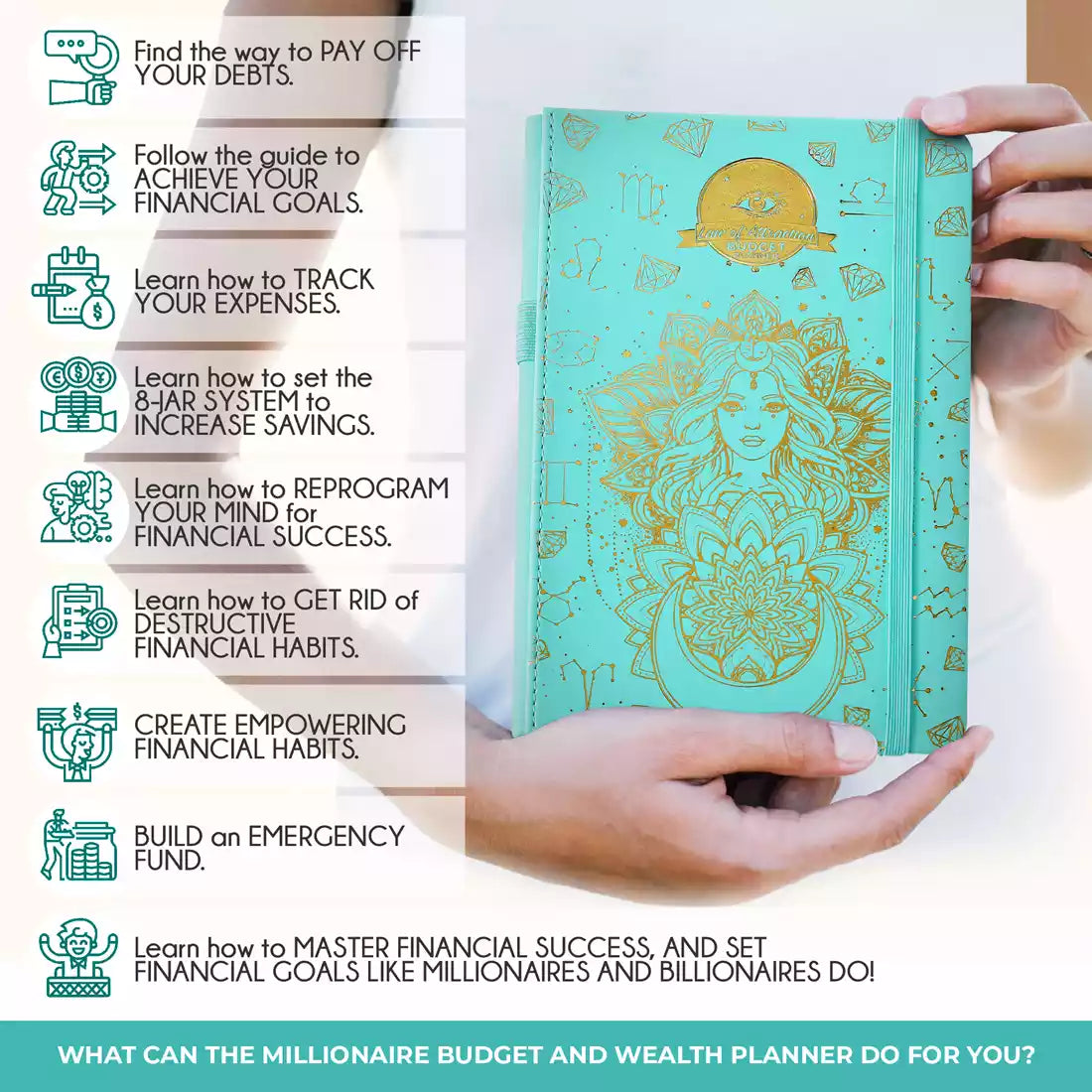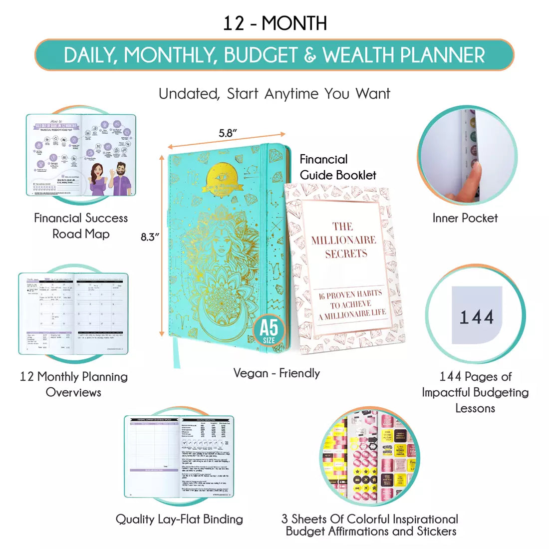 💎 THIS IS A DELUXE UNDATED BUDGET & WEALTH PLANNER showing you how to reprogram your mind to master financial success. It helps you to find a way to pay off your debts, track your expenses, increase savings, and build emergency fund.
