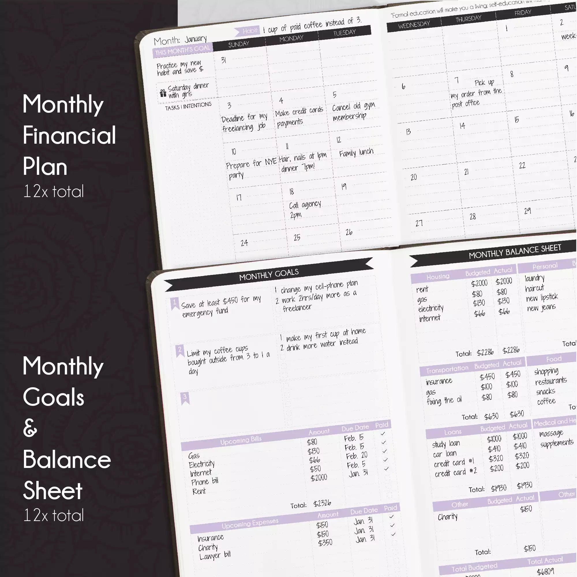 💎 CREATE EMPOWERING FINANCIAL HABITS & GET RID OF DESTRUCTIVE FINANCIAL HABITS - Help you become much more productive by teaching you how to build new supportive habits. This Weekly Planner includes 12 Monthly Financial Calendars, Budget, Goals, Balance Sheets, Expense Trackers, Financial Reflection and Review Pages, Financial Habit Trackers, Saving Trackers, Debt Trackers, Monthly Bill Trackers, Sinking Fund Sheets, Holiday Budget Tracker and Summary of the Year.