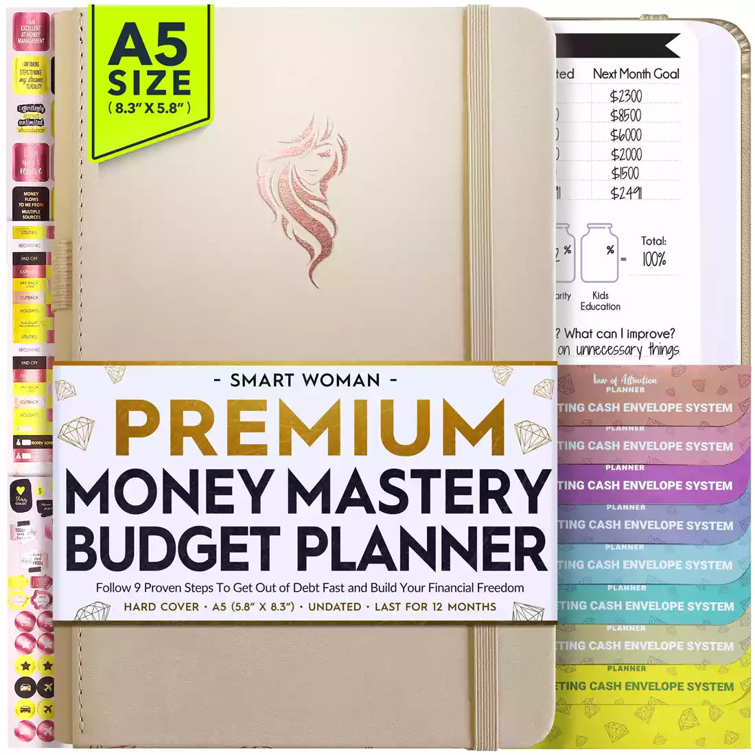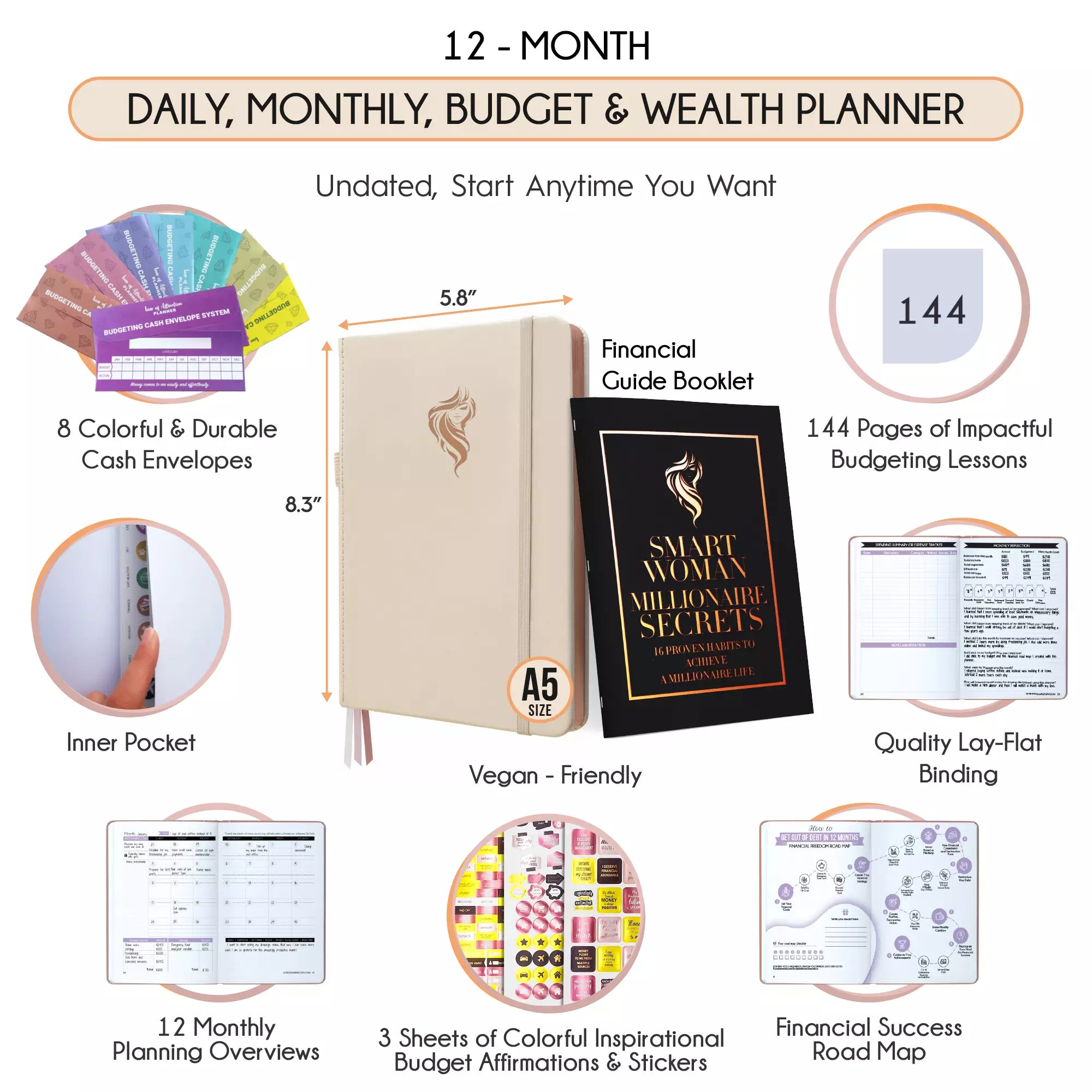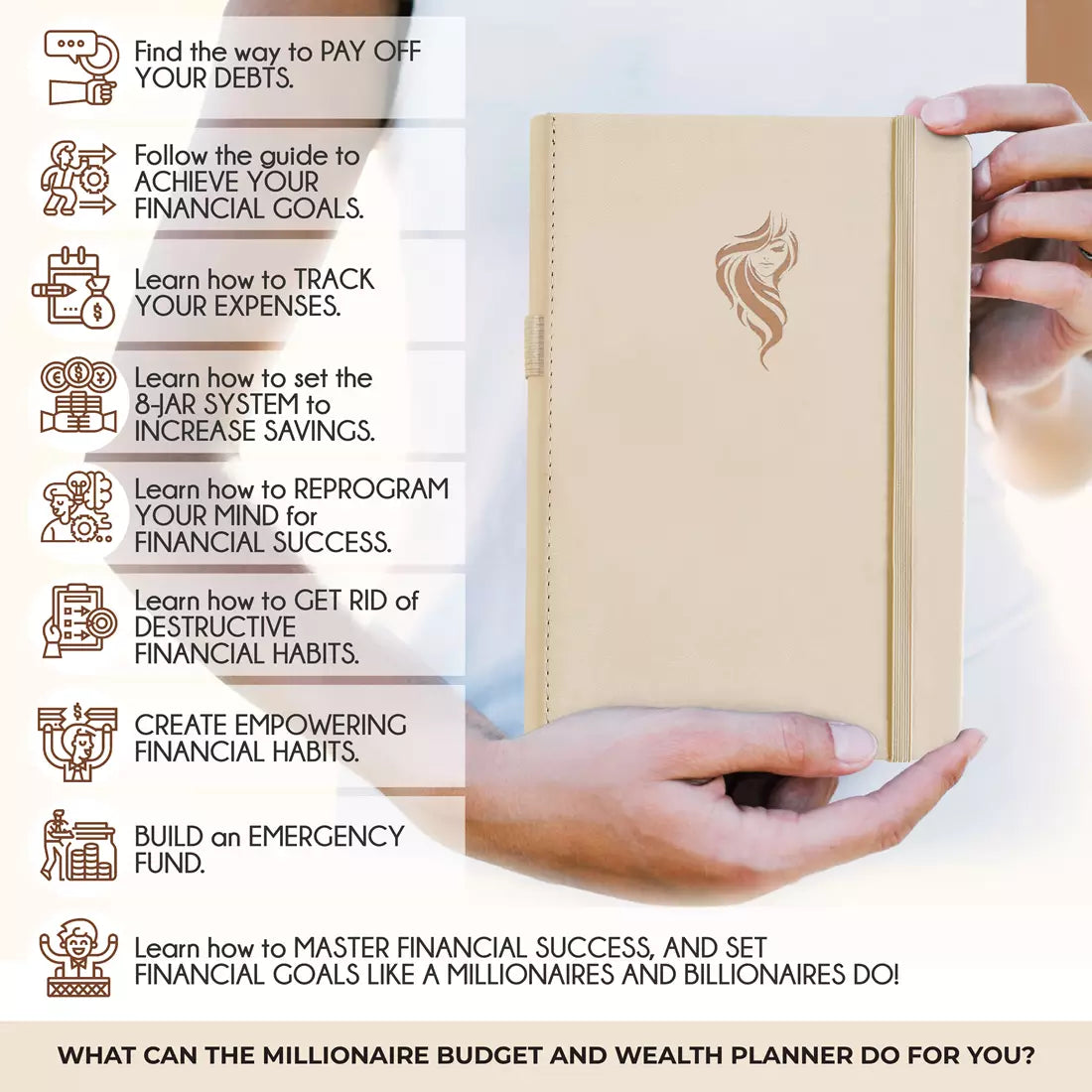 💎 THIS IS A DELUXE UNDATED BUDGET & WEALTH PLANNER showing you how to reprogram your mind to master financial success. It helps you to find a way to pay off your debts, track your expenses, increase savings, and build emergency fund.