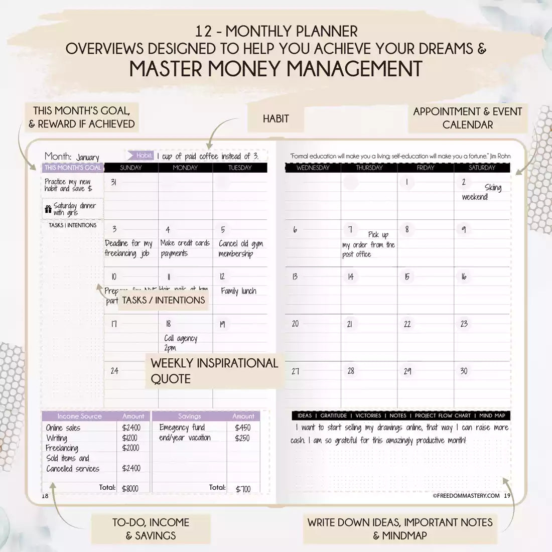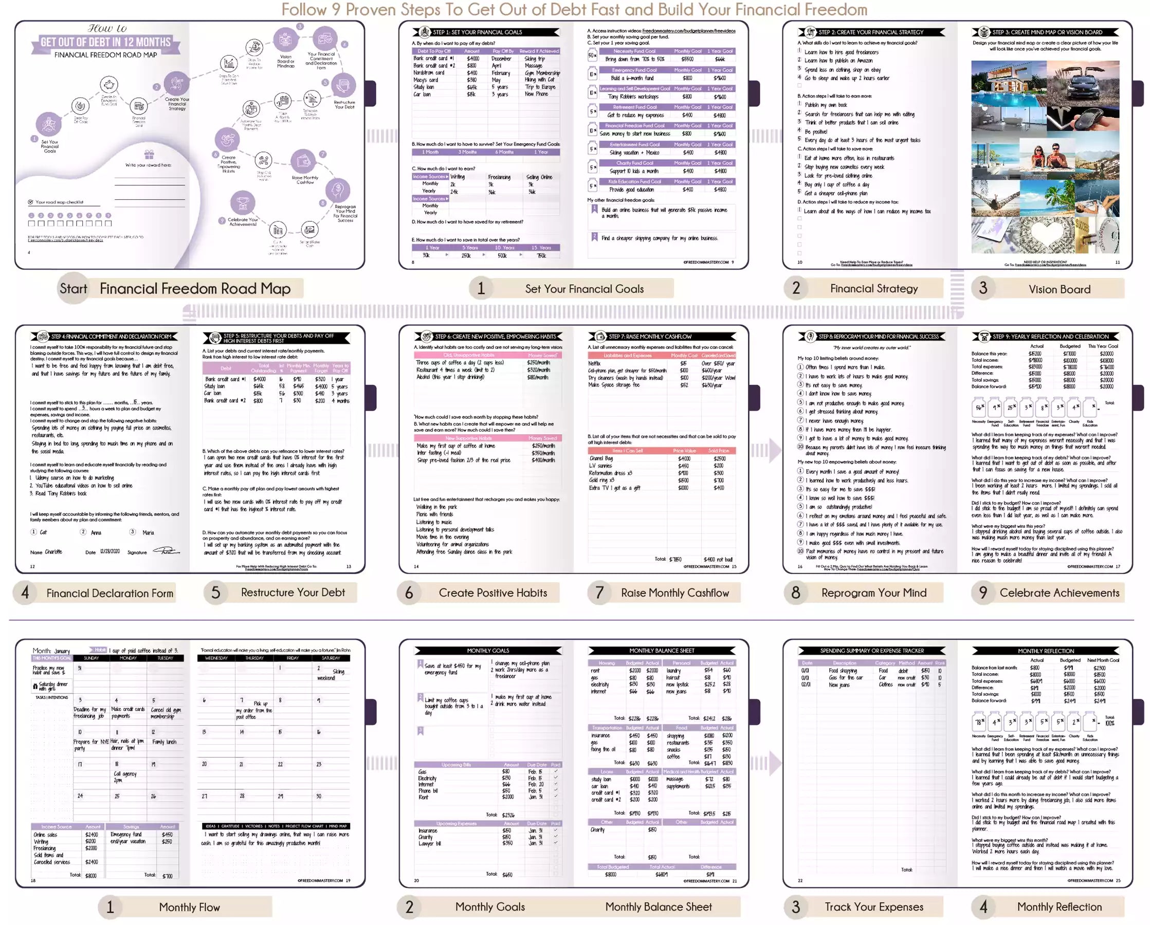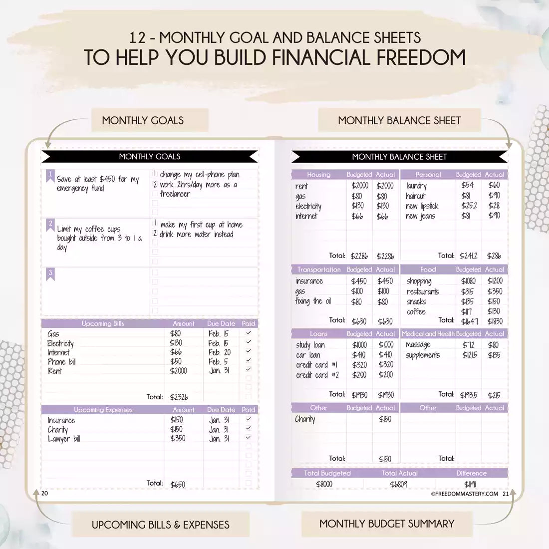 💎 THIS IS A DELUXE UNDATED BUDGET & WEALTH PLANNER showing you how to reprogram your mind to master financial success. It helps you to find a way to pay off your debts, track your expenses, increase savings, and build emergency fund.