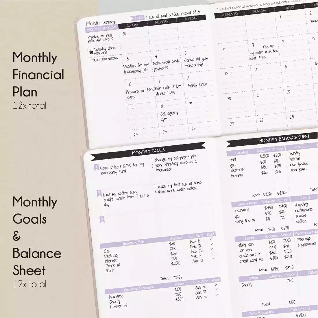 💎 CREATE EMPOWERING FINANCIAL HABITS & GET RID OF DESTRUCTIVE FINANCIAL HABITS - Help you become much more productive by teaching you how to build new supportive habits. This Weekly Planner includes 12 Monthly Financial Calendars, Budget, Goals, Balance Sheets, Expense Trackers, Financial Reflection and Review Pages, Financial Habit Trackers, Saving Trackers, Debt Trackers, Monthly Bill Trackers, Sinking Fund Sheets, Holiday Budget Tracker and Summary of the Year.