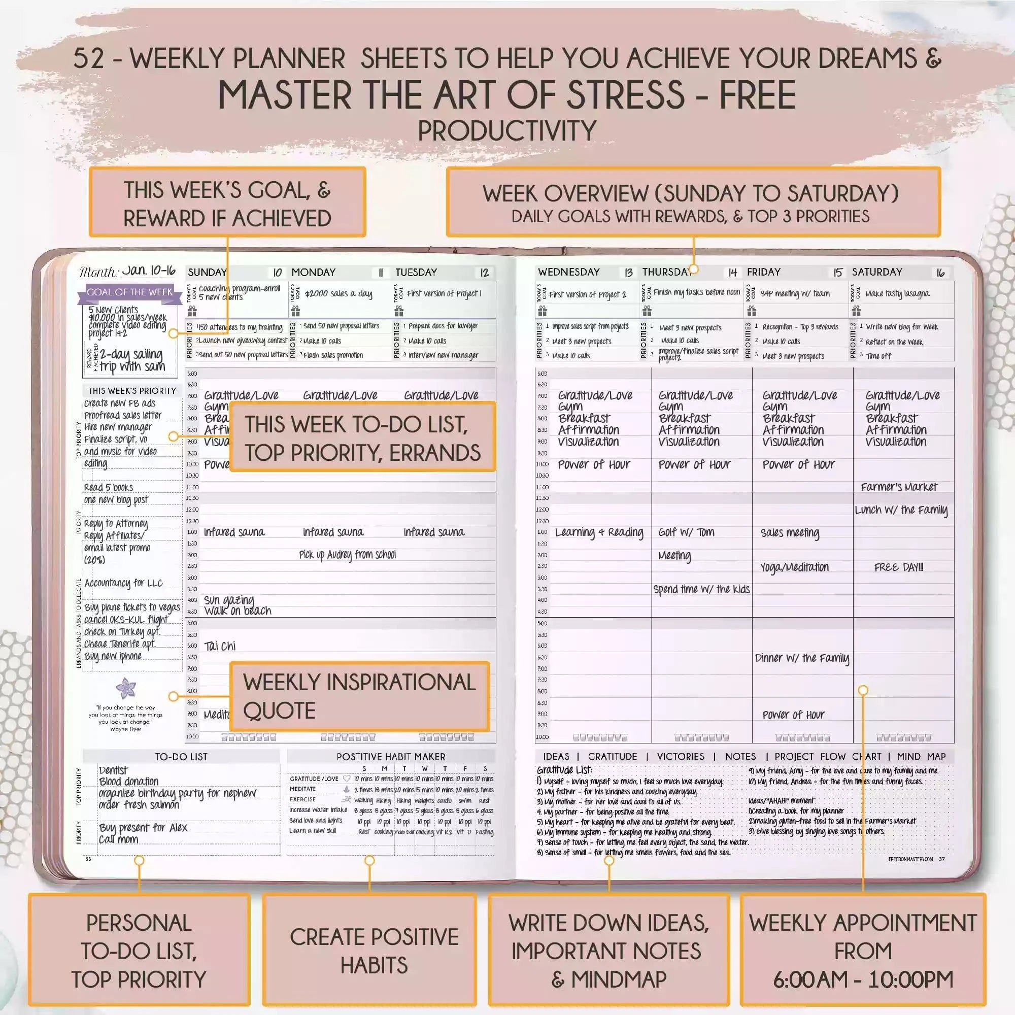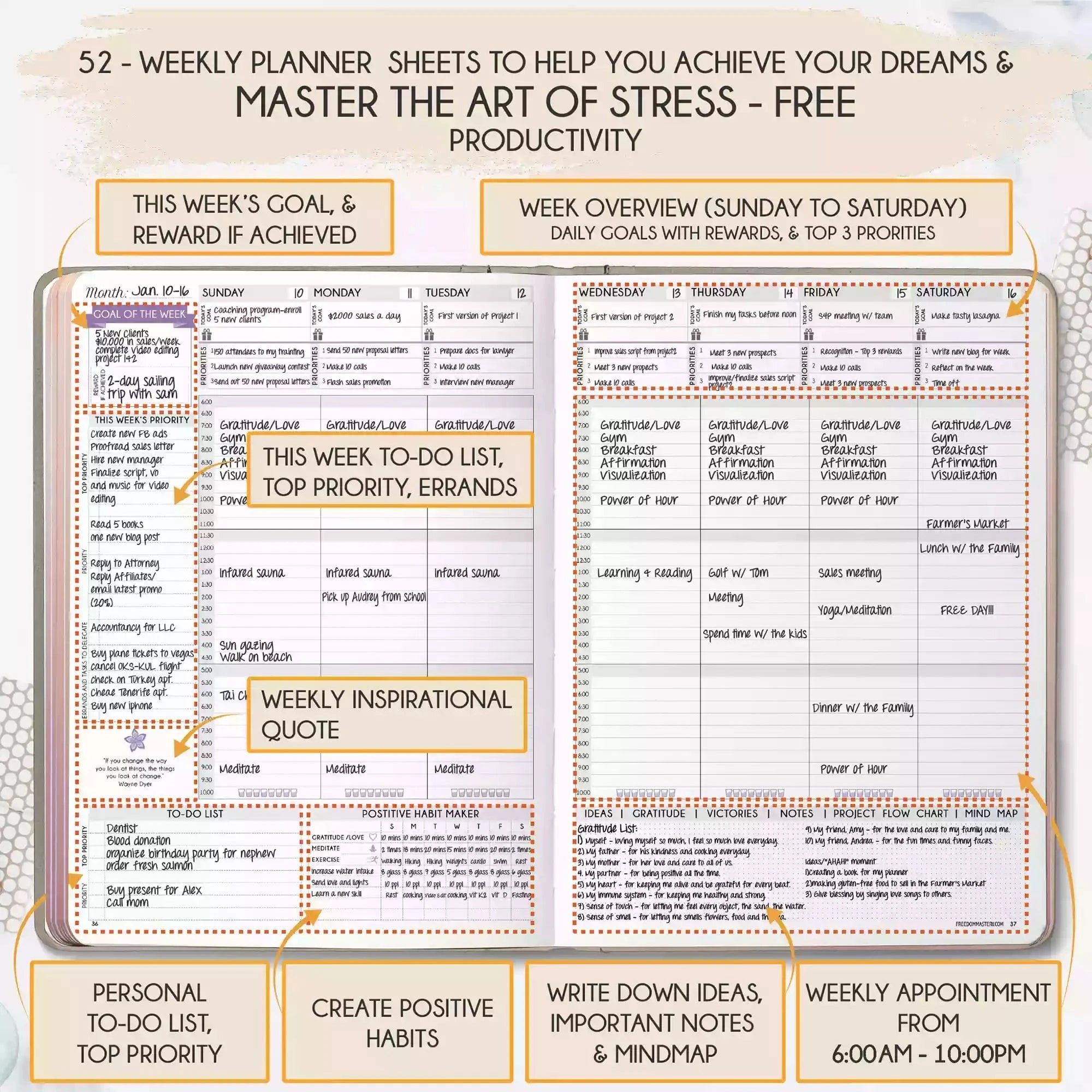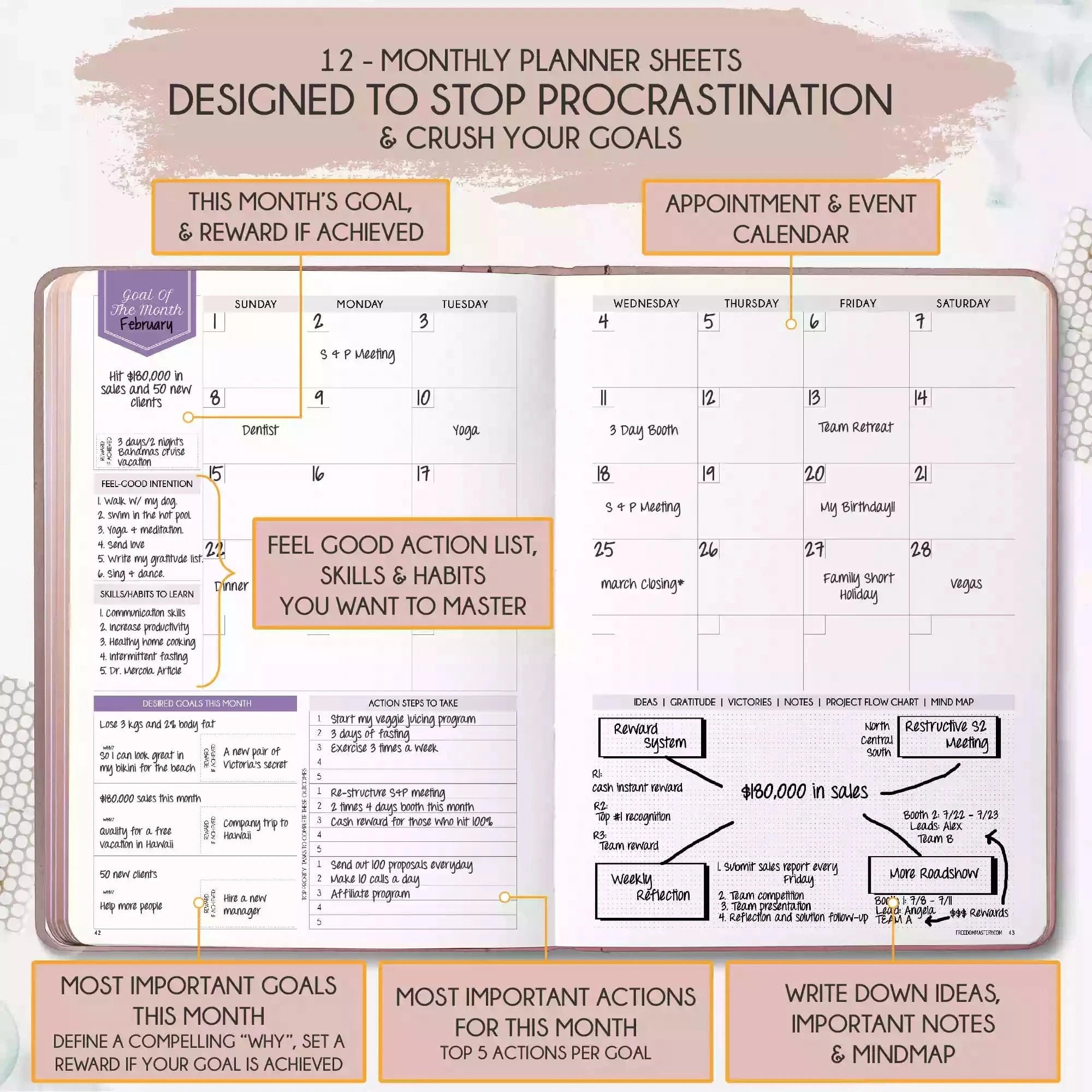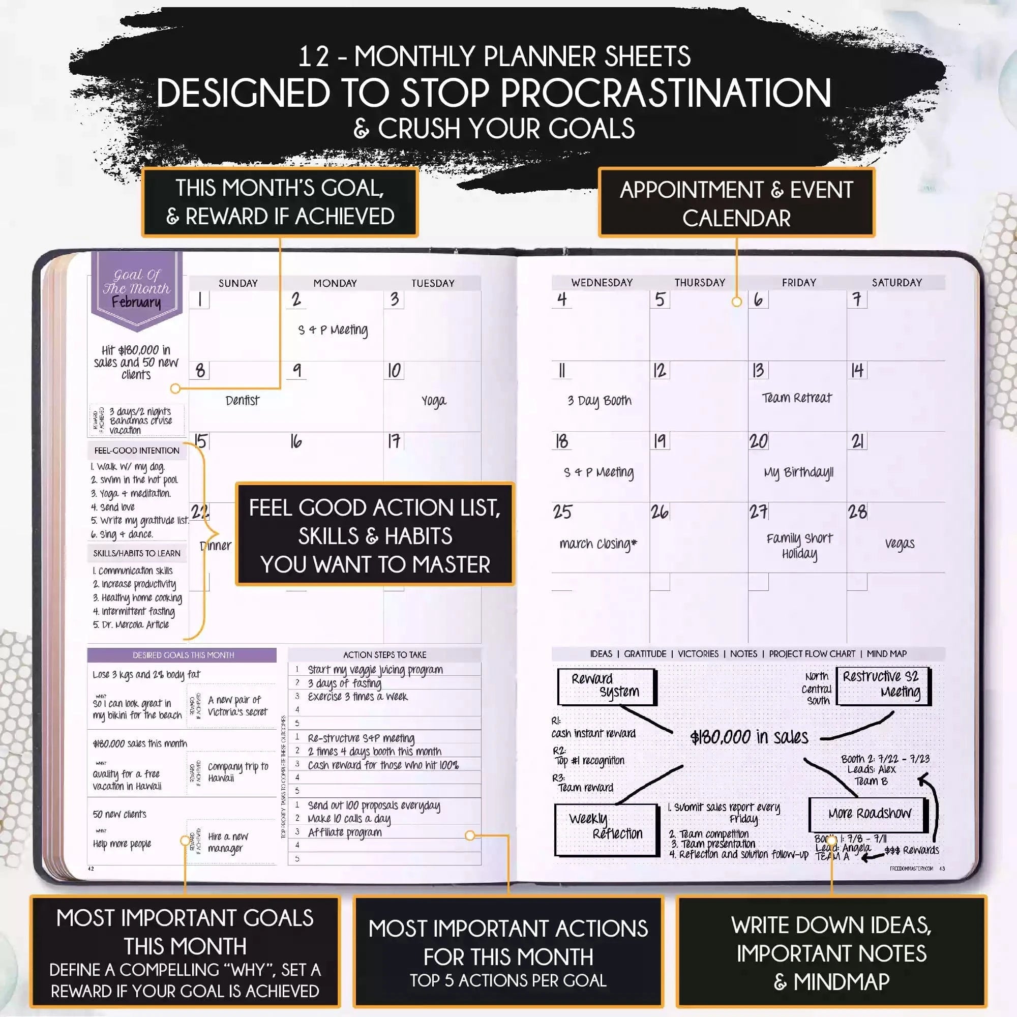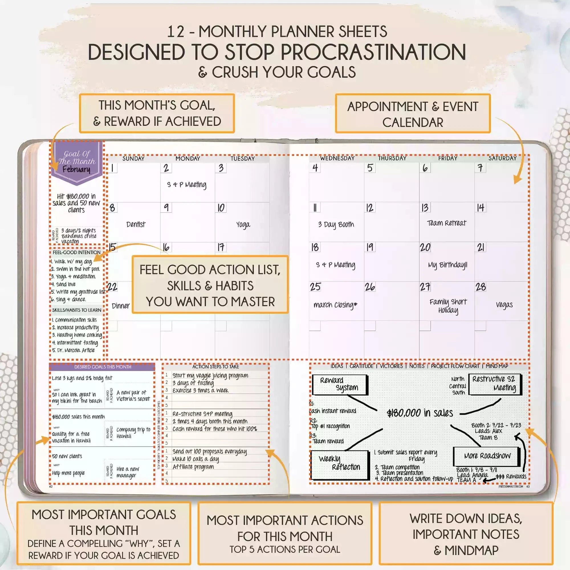 This is the 6th planner I've purchased and can't say enough about them. If you are looking for a planner that has everything that can help you succeed in so many areas of your life, that can also help with mindset, goals, etc then this is the planner for you. This planner has you set up for success, and all you have to do is follow what has been laid out for you. Success is inevitable with such a detailed and well thought out system like the one in this planner. And to top it off these planners are absolutely Gorgeous!!! I had to wait almost 6 months until I was finally able to grab this beauty and it is even more stunning in person. I have to say, this is my favorite one so far, just breathtaking. It most definitely was worth the wait. Absolutely LOVE my planners.
