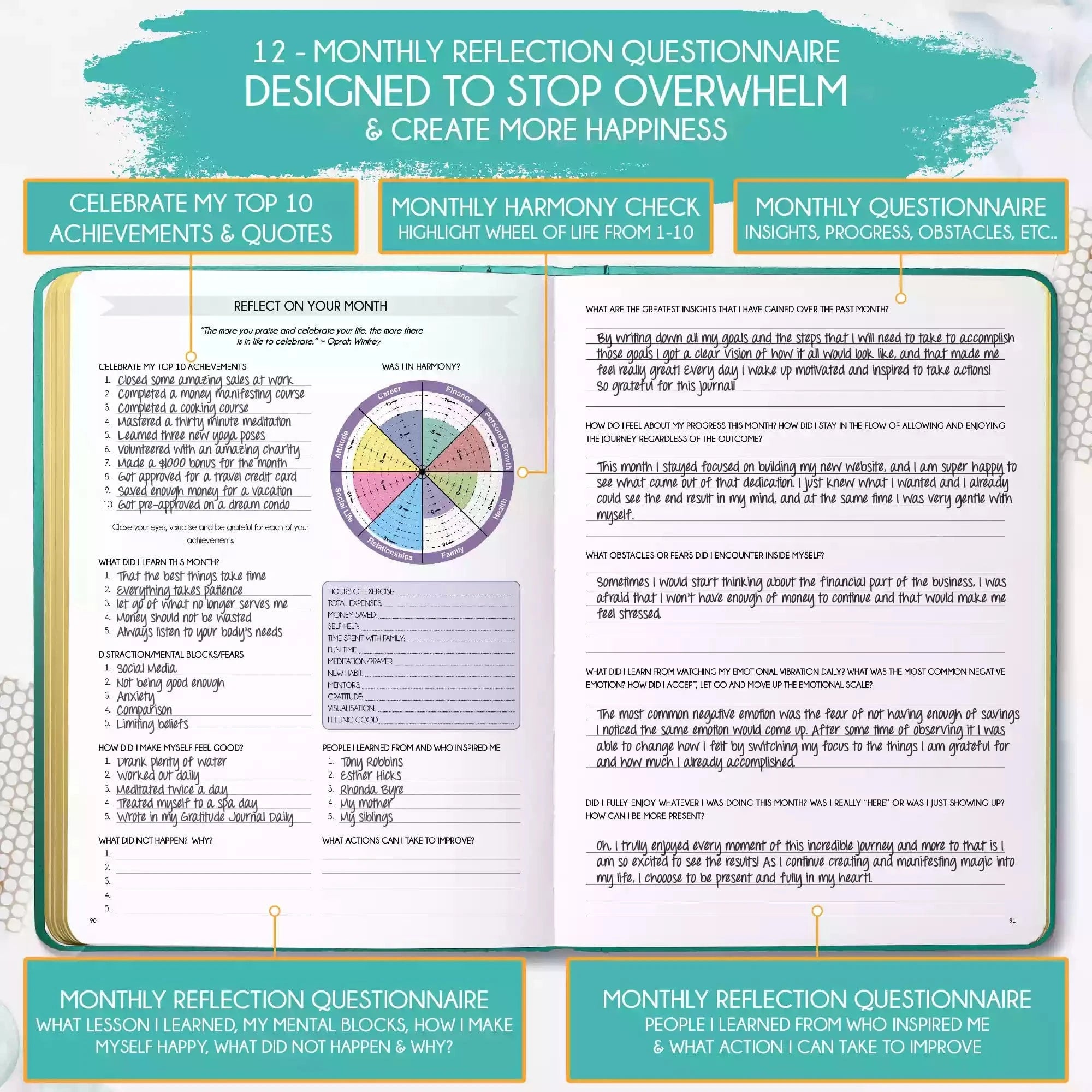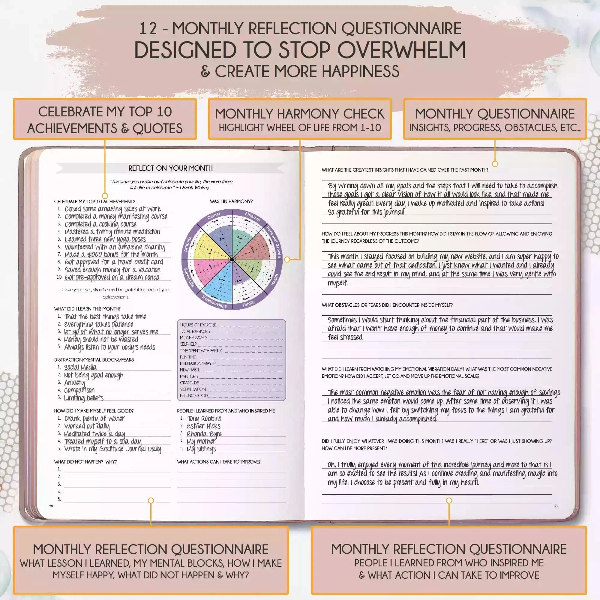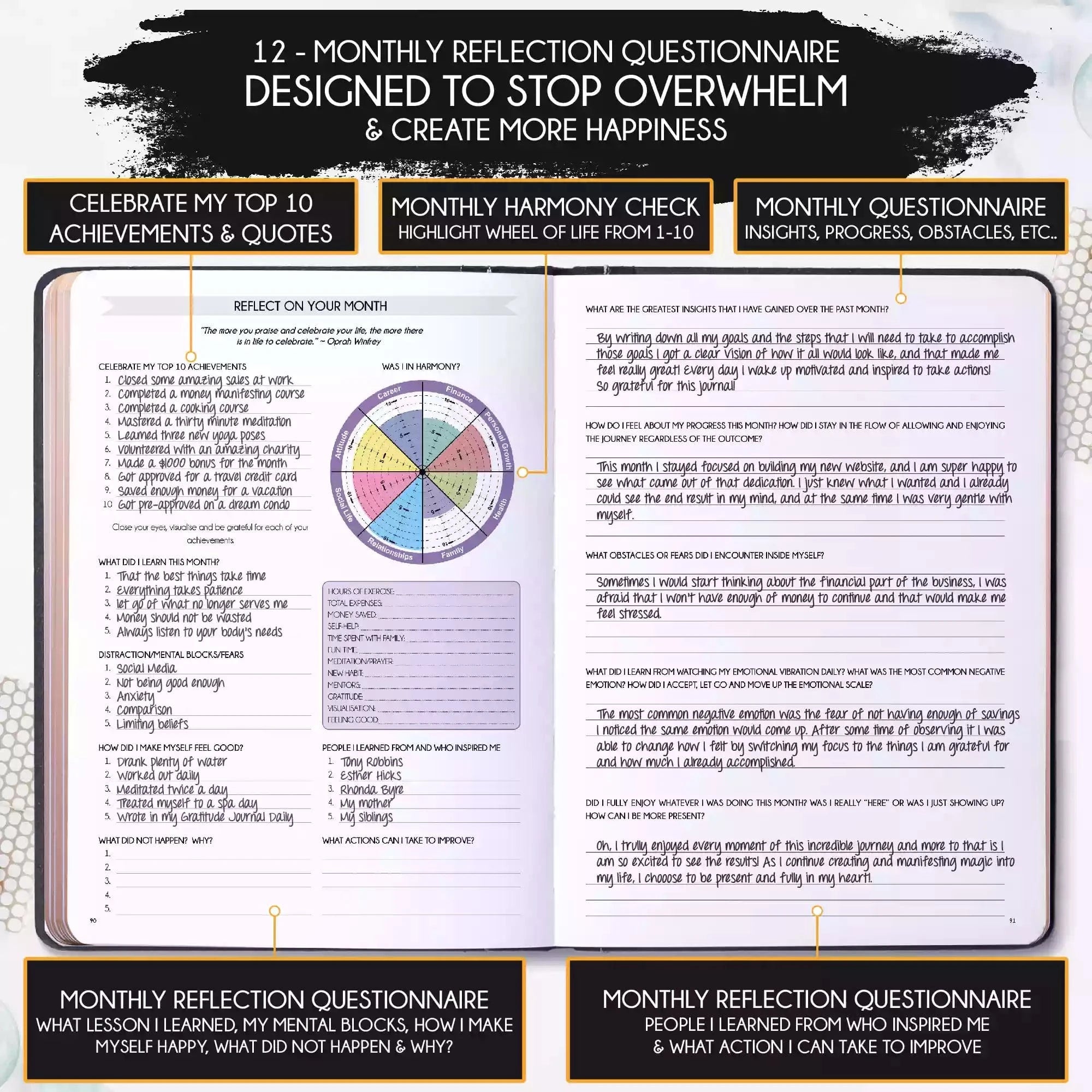 This planner is GORGEOUS! I love the design on the cover—it is very intricate. I have not started using it yet, as I just received it. However, I’ve used Law of Attraction planners before and I love all the fill-ins and pages that allow for reflection. I am a teacher, single mother, and just often busier than not...so I love having a single place to plan and reflect. It is very cathartic for the busy individual. I highly recommend.