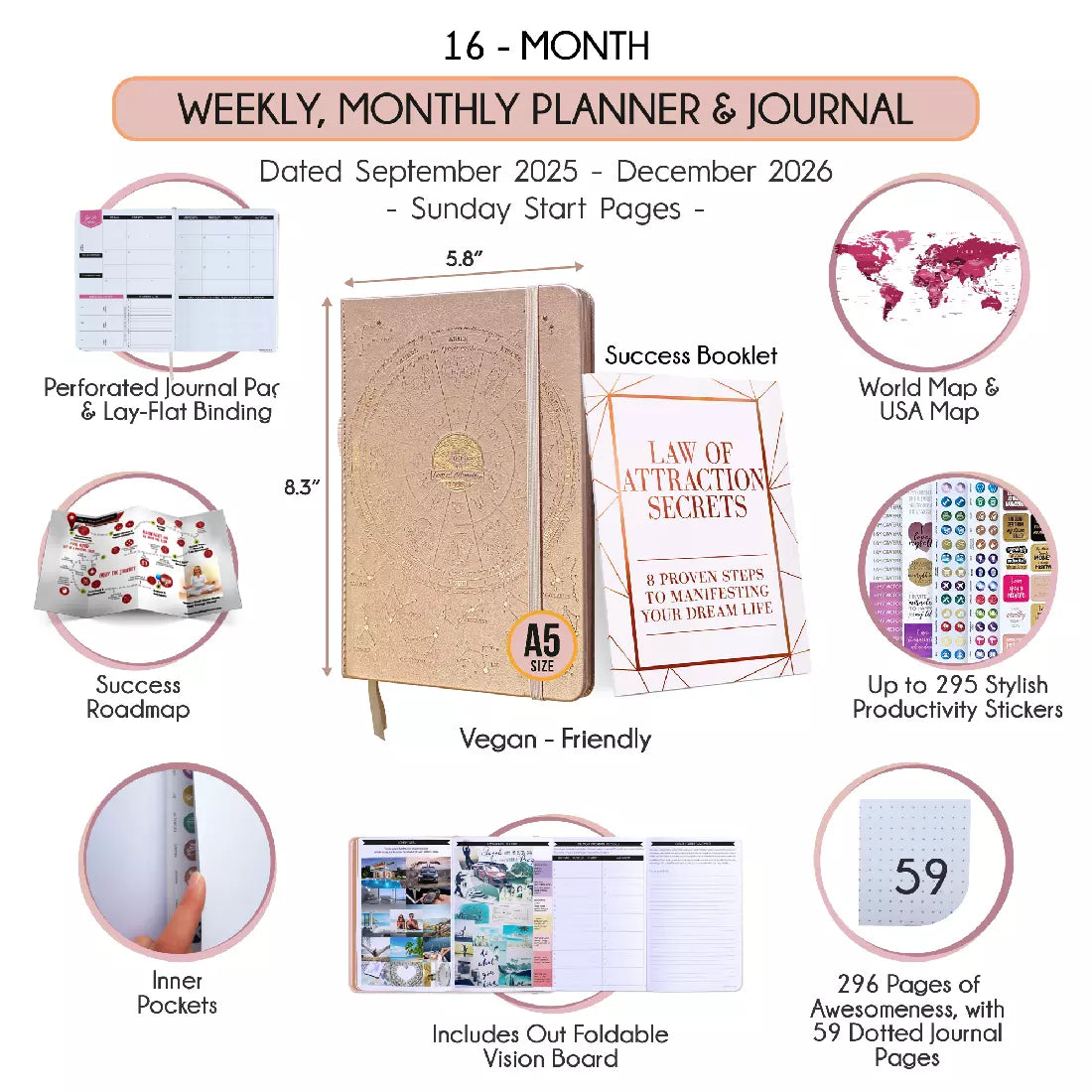 💎 Calendar starts Sep 2025 - Dec 2026. A5 size: 6 x 8.5 inches.