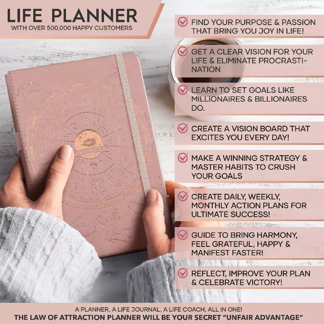 💎 ACHIEVE YOUR GOALS AND IMPROVE TIME MANAGEMENT - Learn How To Set Big Goals and achieve them by improving your time management - Follow the same methods millionaires and billionaires around the world follow to set goals and achieve them. You will be amazed by the results if you follow the 8 steps in this planner! FIND YOUR LIFE PURPOSE AND LIVE YOUR PASSION - Discover what you truly want in your life. Following your passion and purpose will give you more joy than you ever imagined.