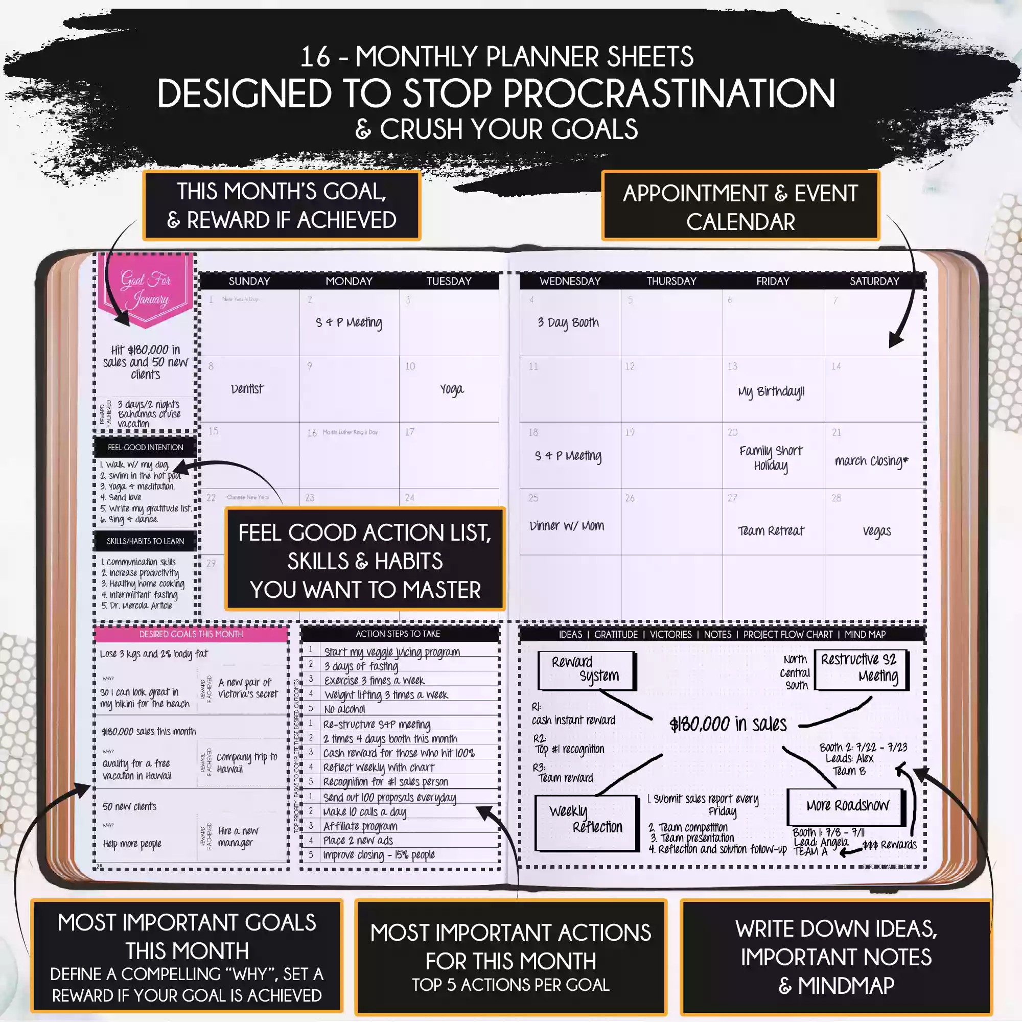 💎 ACHIEVE YOUR GOALS AND IMPROVE TIME MANAGEMENT - Learn How To Set Big Goals and achieve them by improving your time management - Follow the same methods millionaires and billionaires around the world follow to set goals and achieve them. You will be amazed by the results if you follow the 8 steps in this planner! FIND YOUR LIFE PURPOSE AND LIVE YOUR PASSION - Discover what you truly want in your life. Following your passion and purpose will give you more joy than you ever imagined.
