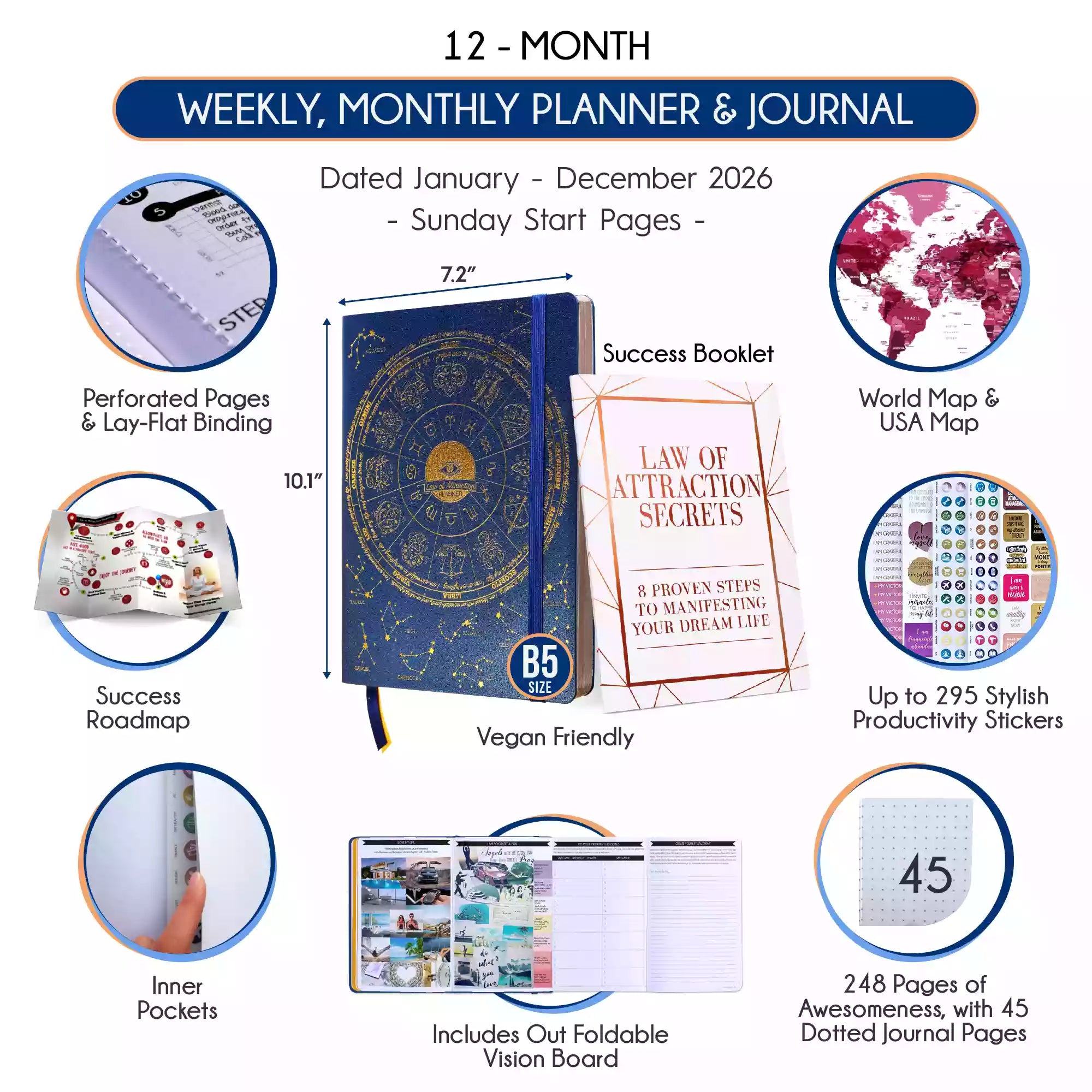 💎 Calendar starts Sep 2025 - Dec 2026 (Sunday start). B5 size: 7.5 x 10 inches.
