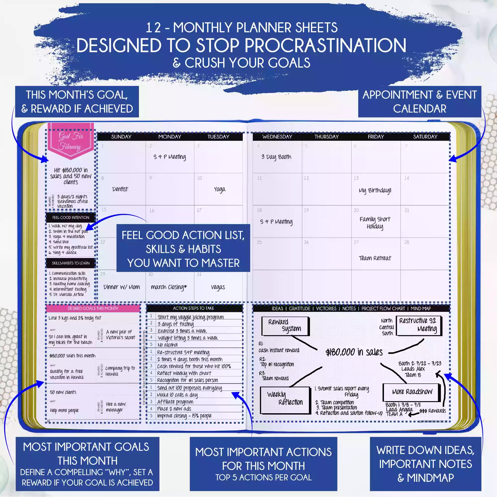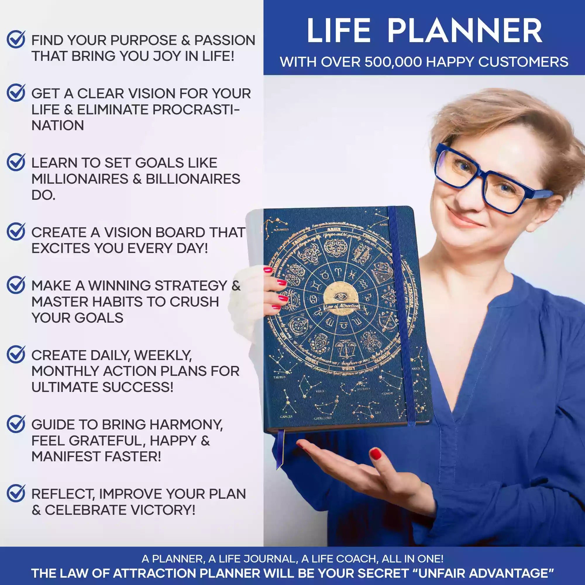 💎 ACHIEVE YOUR GOALS AND IMPROVE TIME MANAGEMENT - Learn How To Set Big Goals and achieve them by improving your time management - Follow the same methods millionaires and billionaires around the world follow to set goals and achieve them. You will be amazed by the results if you follow the 8 steps in this planner! FIND YOUR LIFE PURPOSE AND LIVE YOUR PASSION - Discover what you truly want in your life. Following your passion and purpose will give you more joy than you ever imagined.