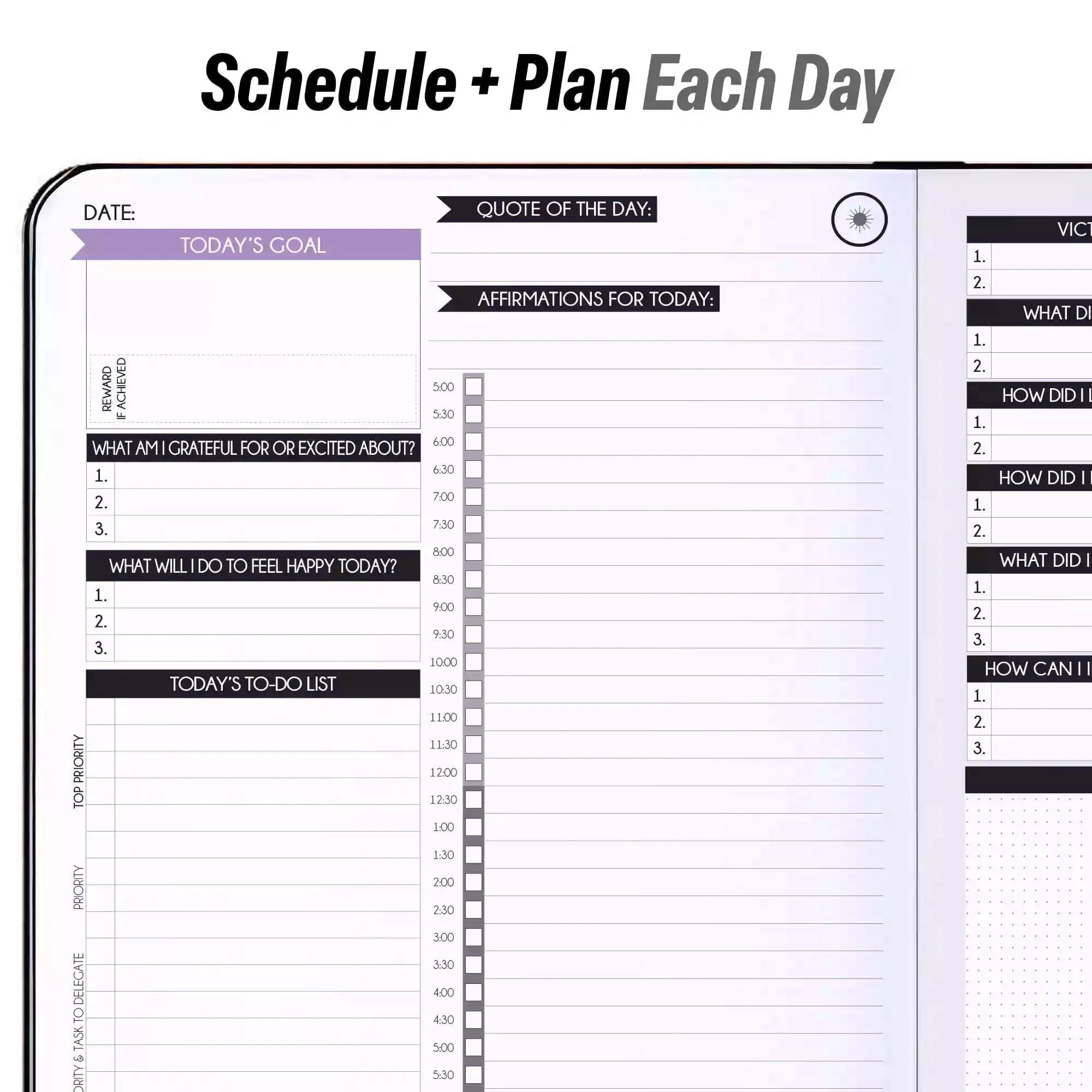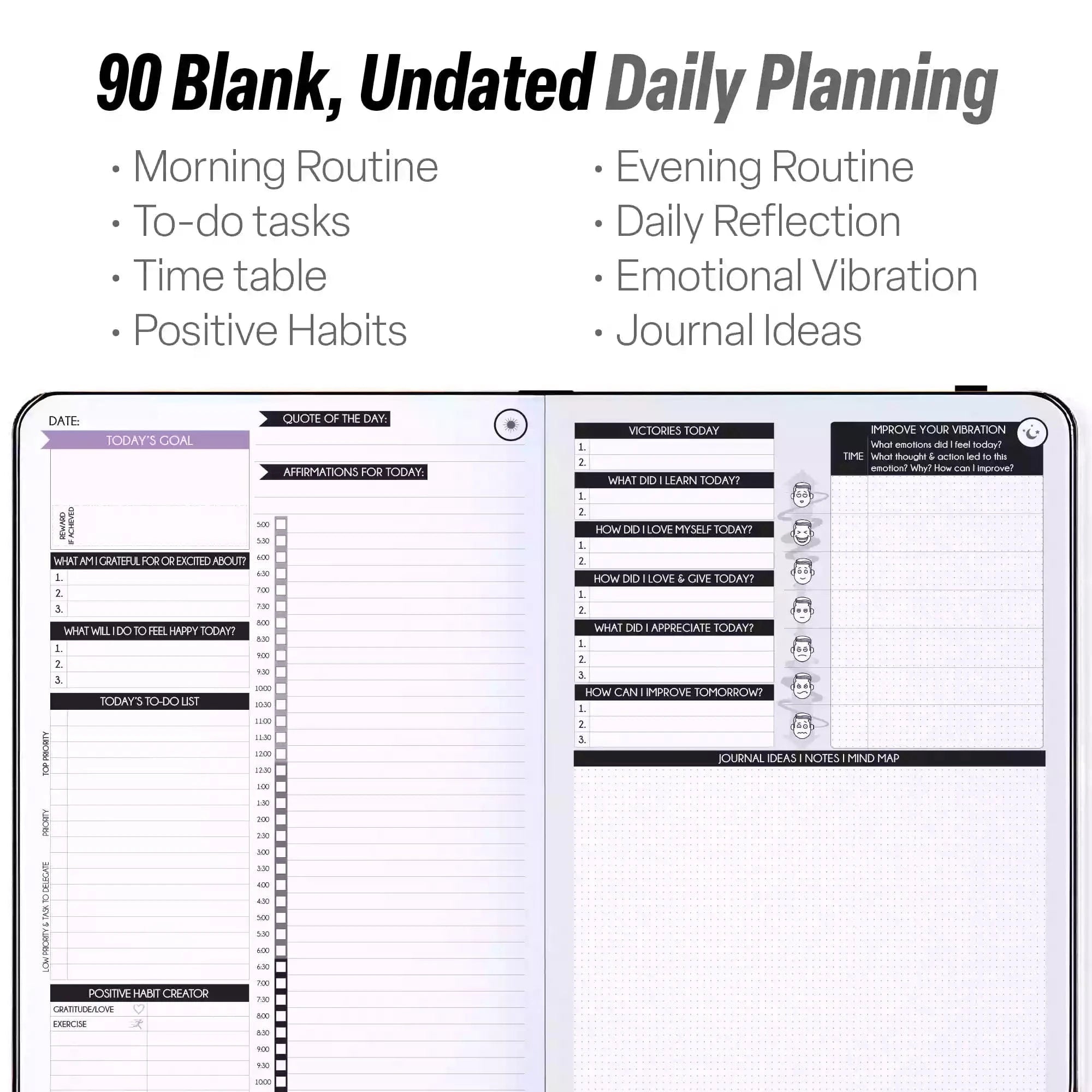 Deluxe Undated 90-Day Daily Planner (A5 Size: 6 x 8.5 inches) ADHD *USA Only*