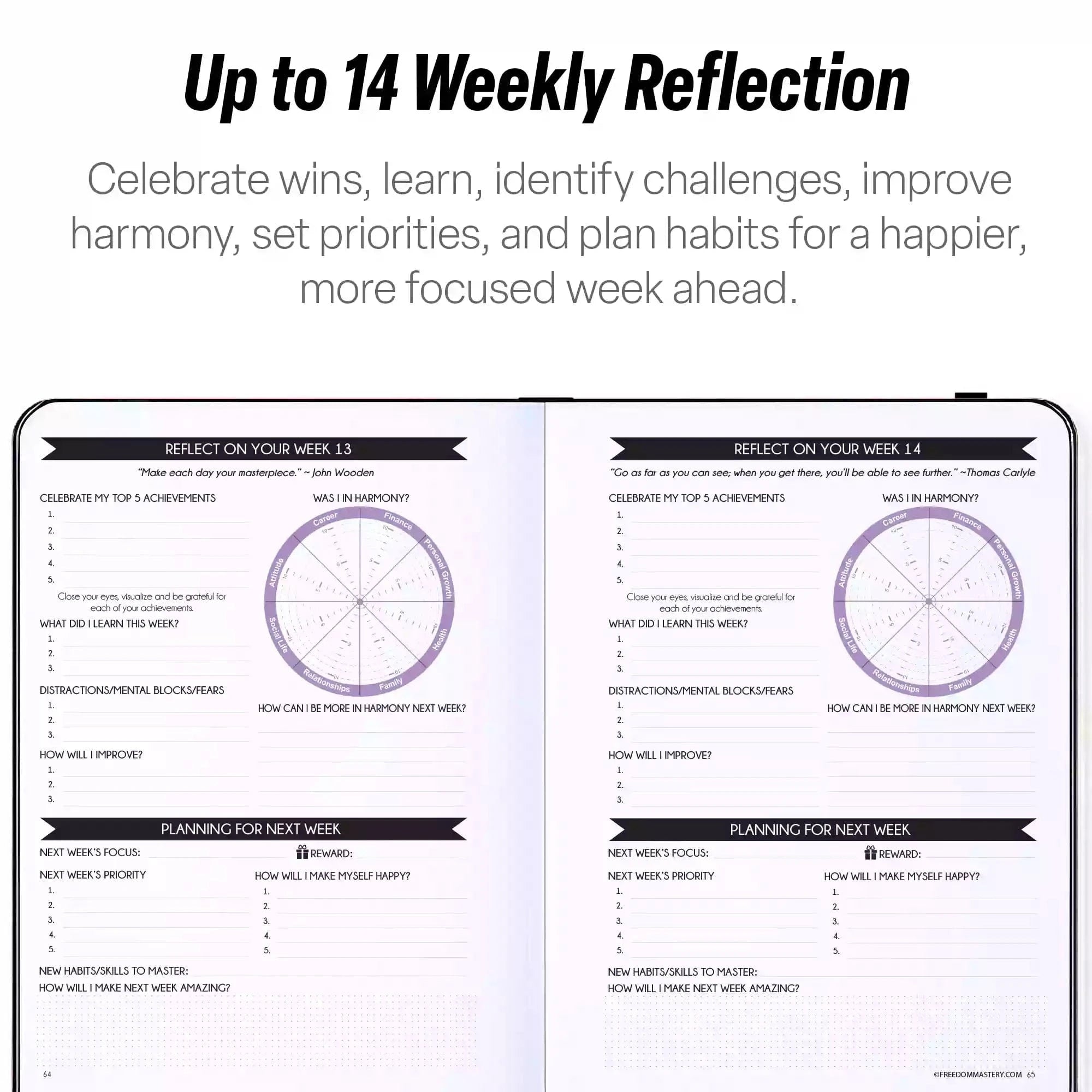 • 💎 GUARANTEED - This planner system has worked for thousands of others, and It will work for you if not you can have a 30-Day Money-Back Guarantee! If you don't see results within 30 days, just return your product for a refund. The planner has 264 pages of awesomeness, 92 daily planning pages, 6 month overviews. 100% ECO AND VEGAN FRIENDLY: We use Forest Stewardship Council (FSC) certified paper. FSC paper protects against harvest of rare old-growth forests, prevents loss of natural forest cover.