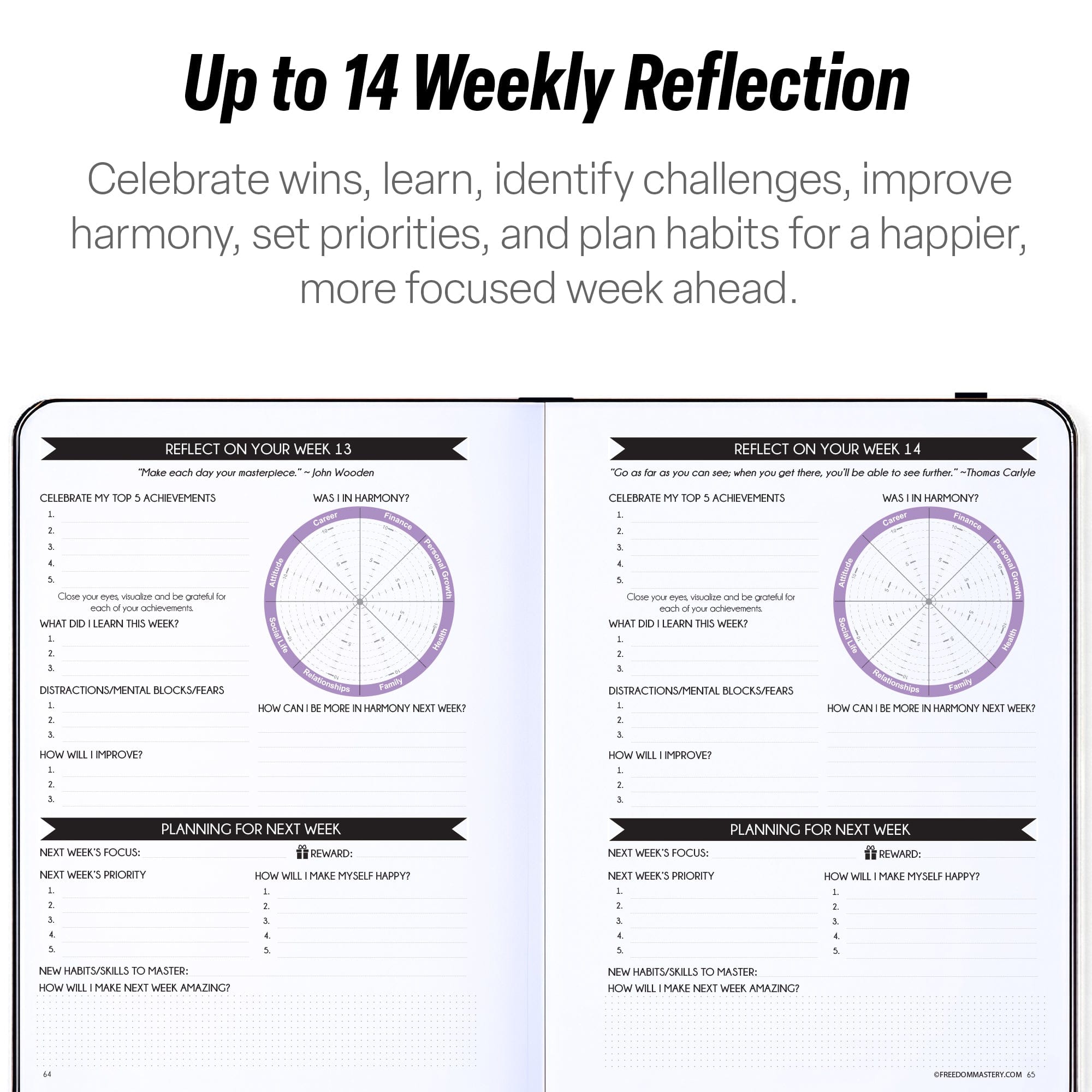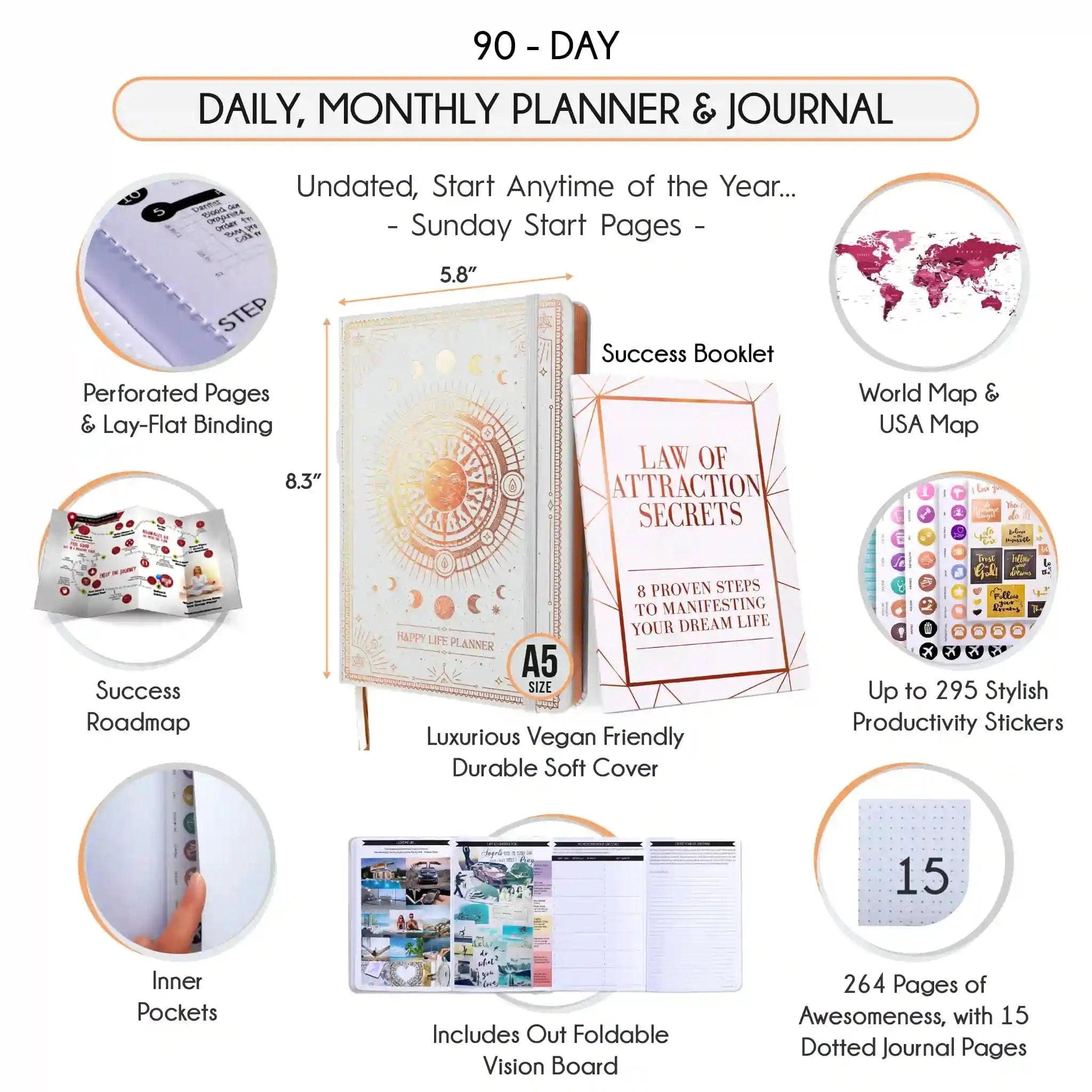 • 💎 GUARANTEED - This planner system has worked for thousands of others, and It will work for you if not you can have a 30-Day Money-Back Guarantee! If you don't see results within 30 days, just return your product for a refund. The planner has 264 pages of awesomeness, 92 daily planning pages, 6 month overviews. 100% ECO AND VEGAN FRIENDLY: We use Forest Stewardship Council (FSC) certified paper. FSC paper protects against harvest of rare old-growth forests, prevents loss of natural forest cover.