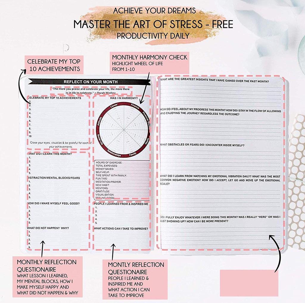 Beautiful durable soft cover made from animal-friendly PU leather with artwork. Ideal for both women and men, perfect for entrepreneurs, professionals, college students and everyone who has burning desire to turn dreams into reality! FREE VIDEO MINI-COURSE: You will learn a 10-minute morning routine used by the most successful people to tenfold your productivity, focus, happiness, and passion! You will master setting goals and fix procrastination!