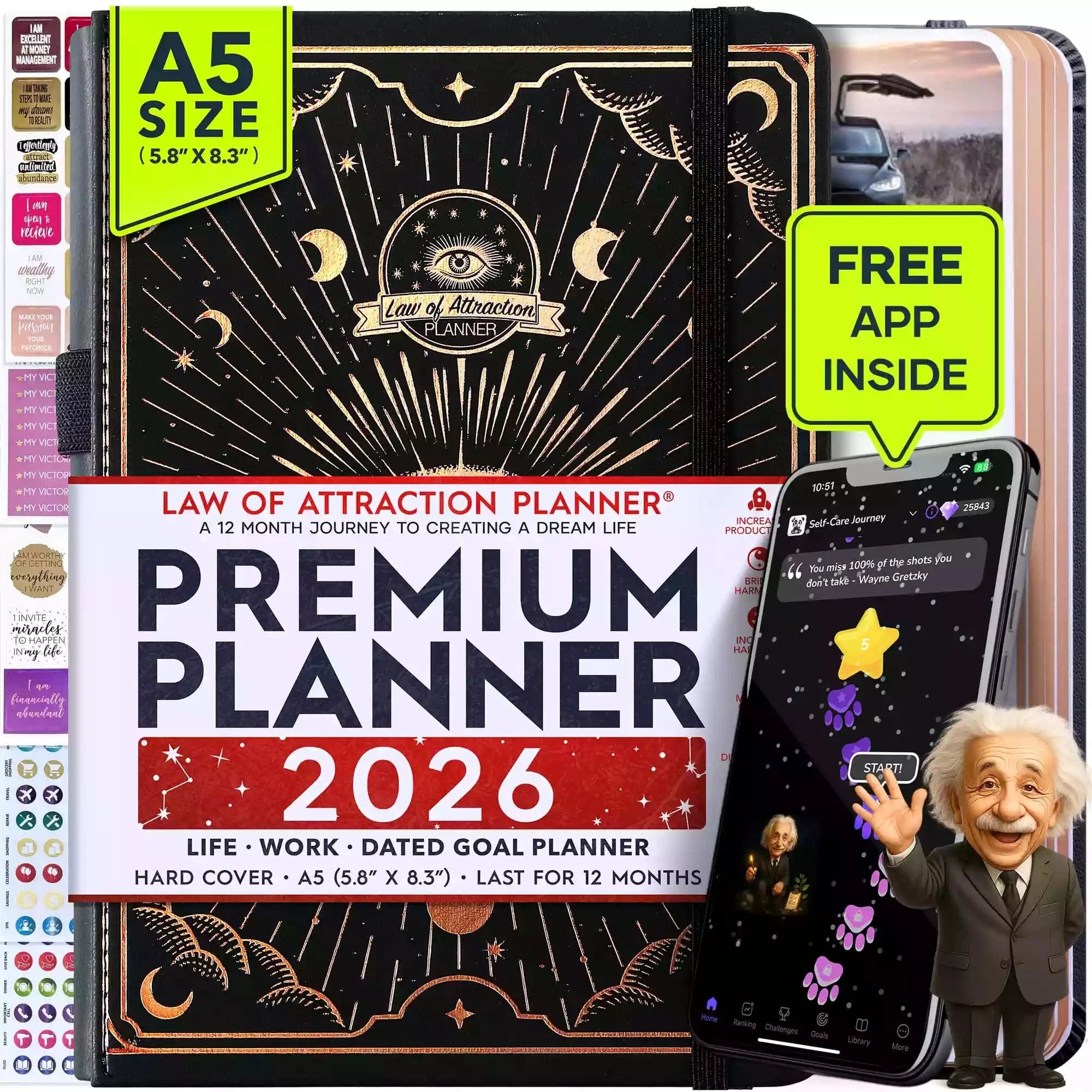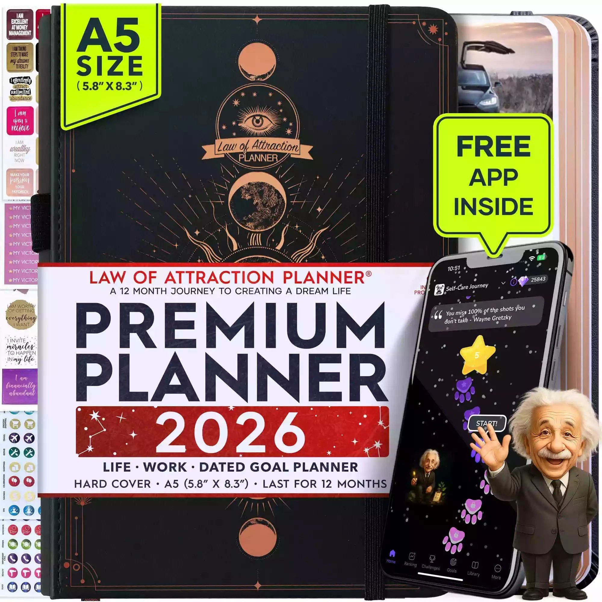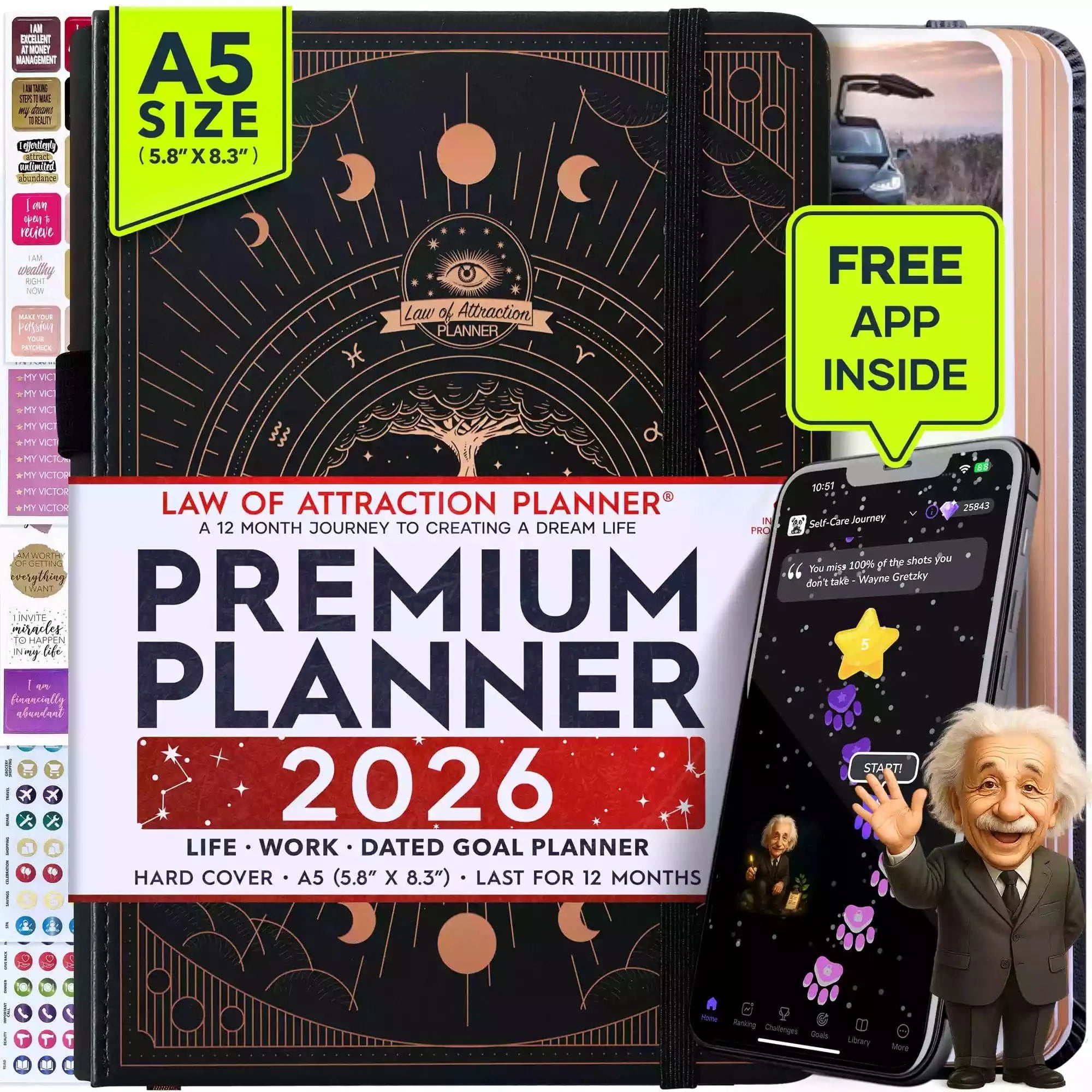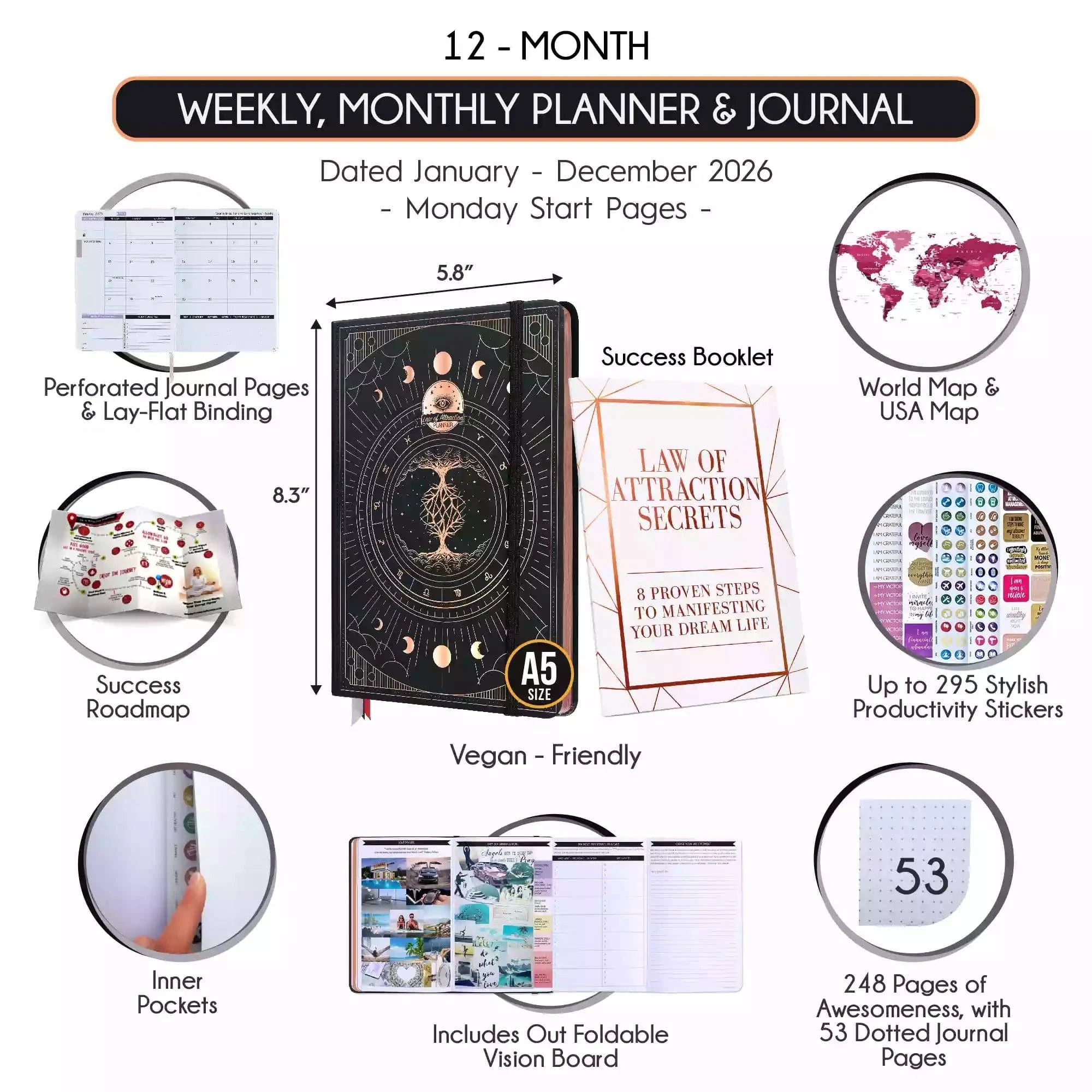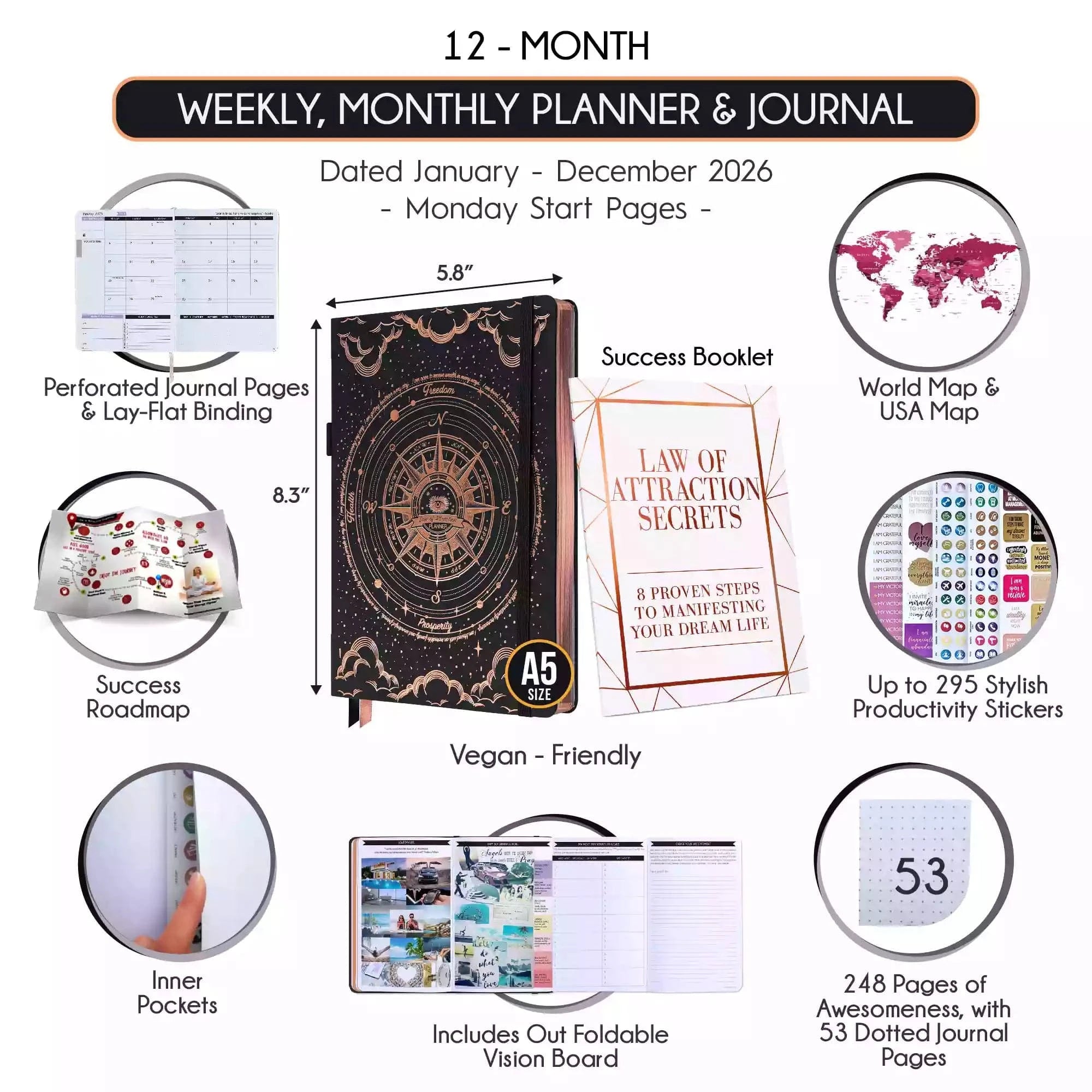 PRE-ORDER: Jan - Dec 2026 Dated Monday Start Deluxe LOA 12 Month Planner (A5 Size: 6 x 8.5 inches) Black Covers