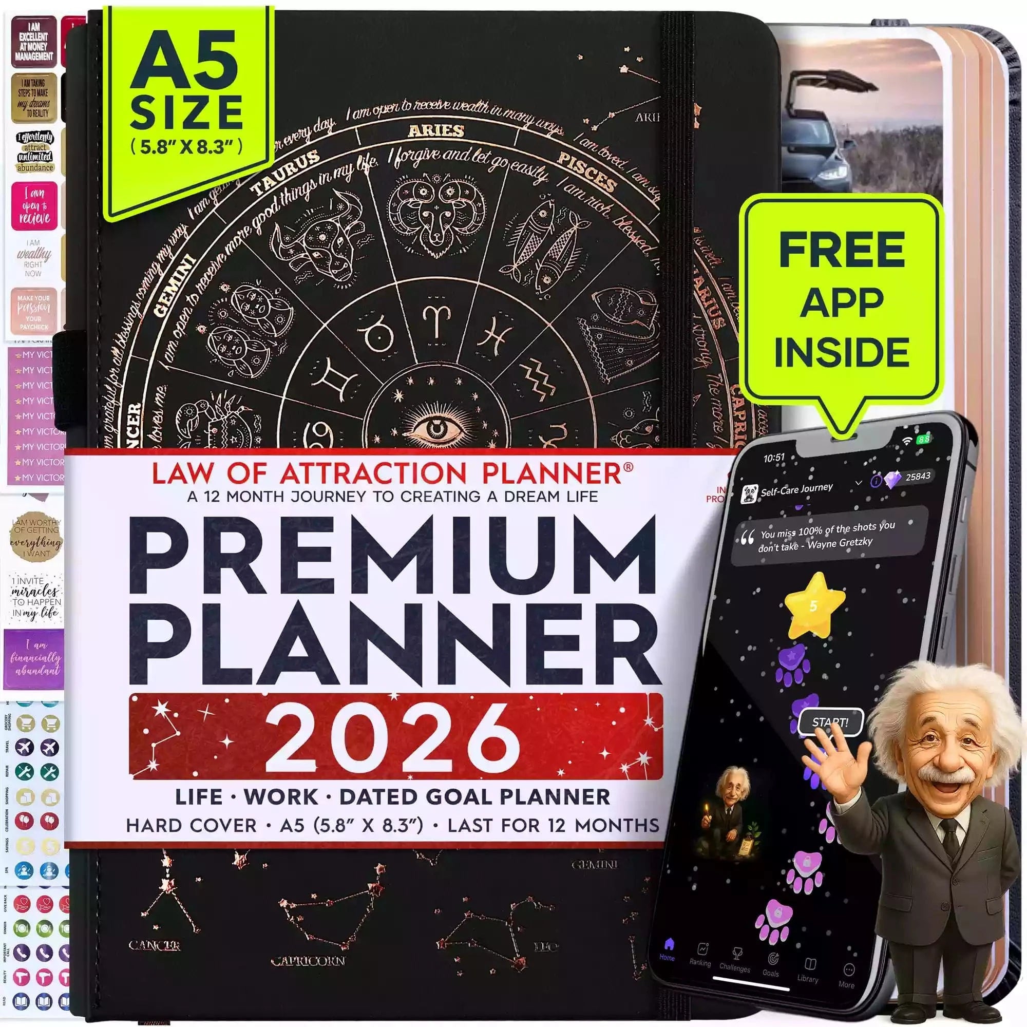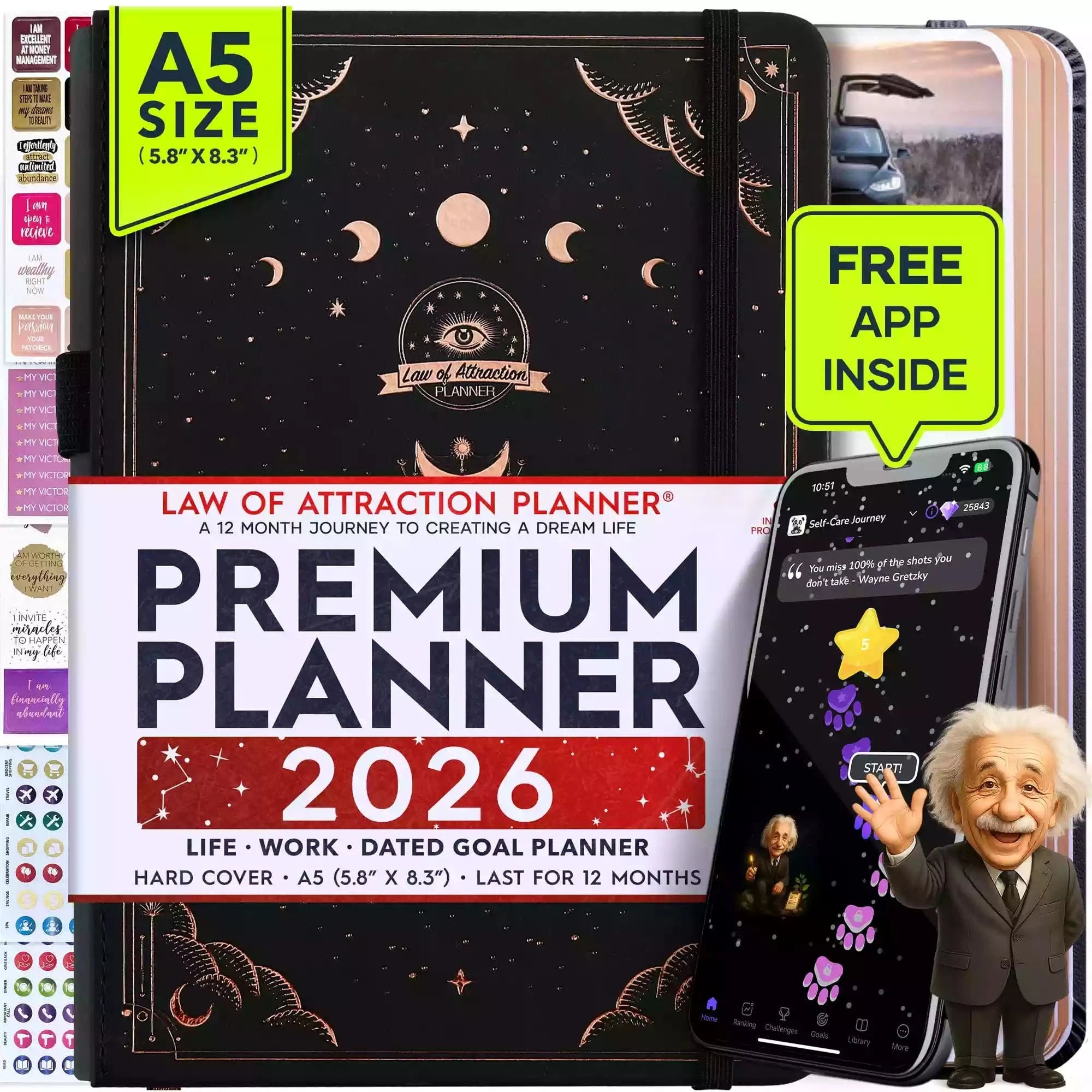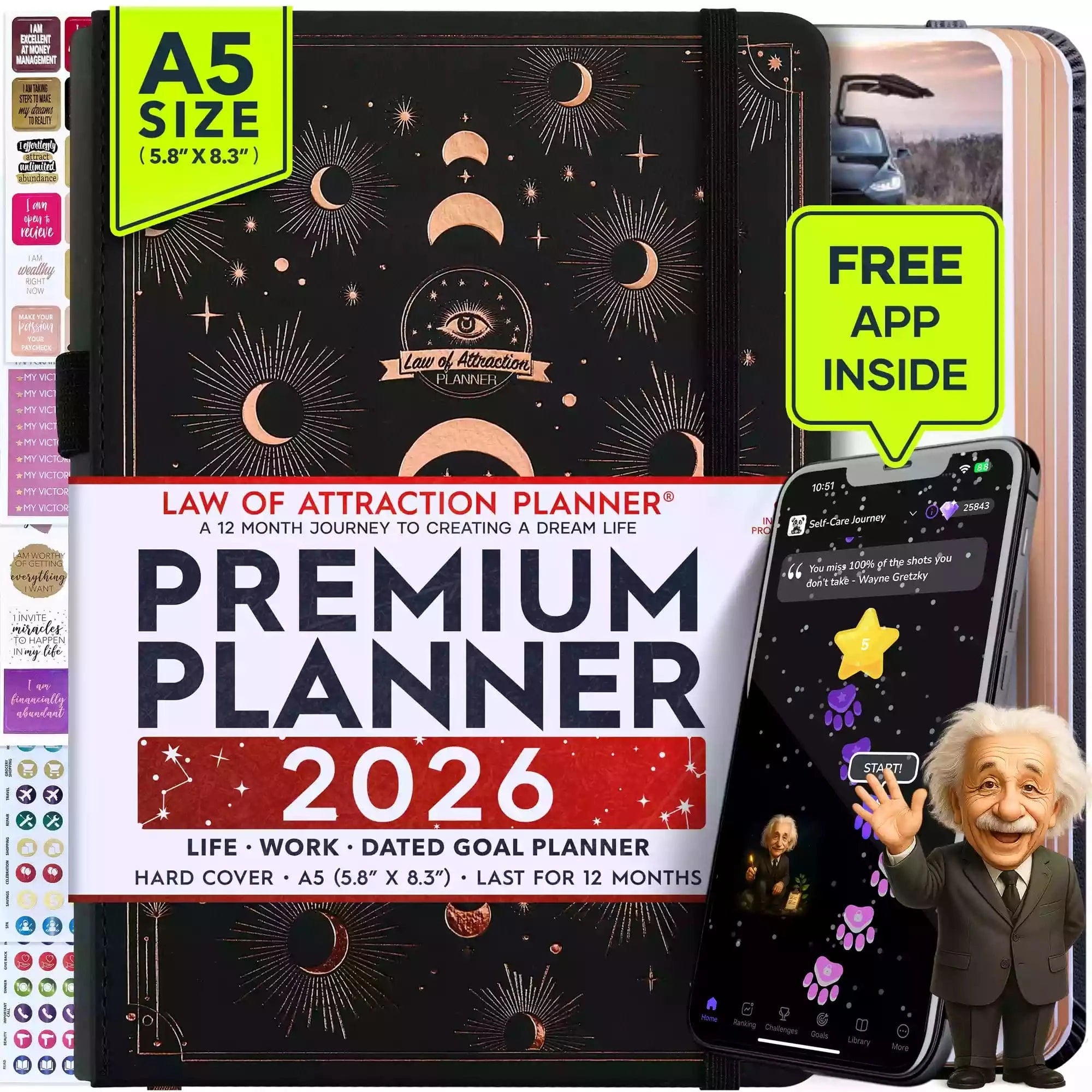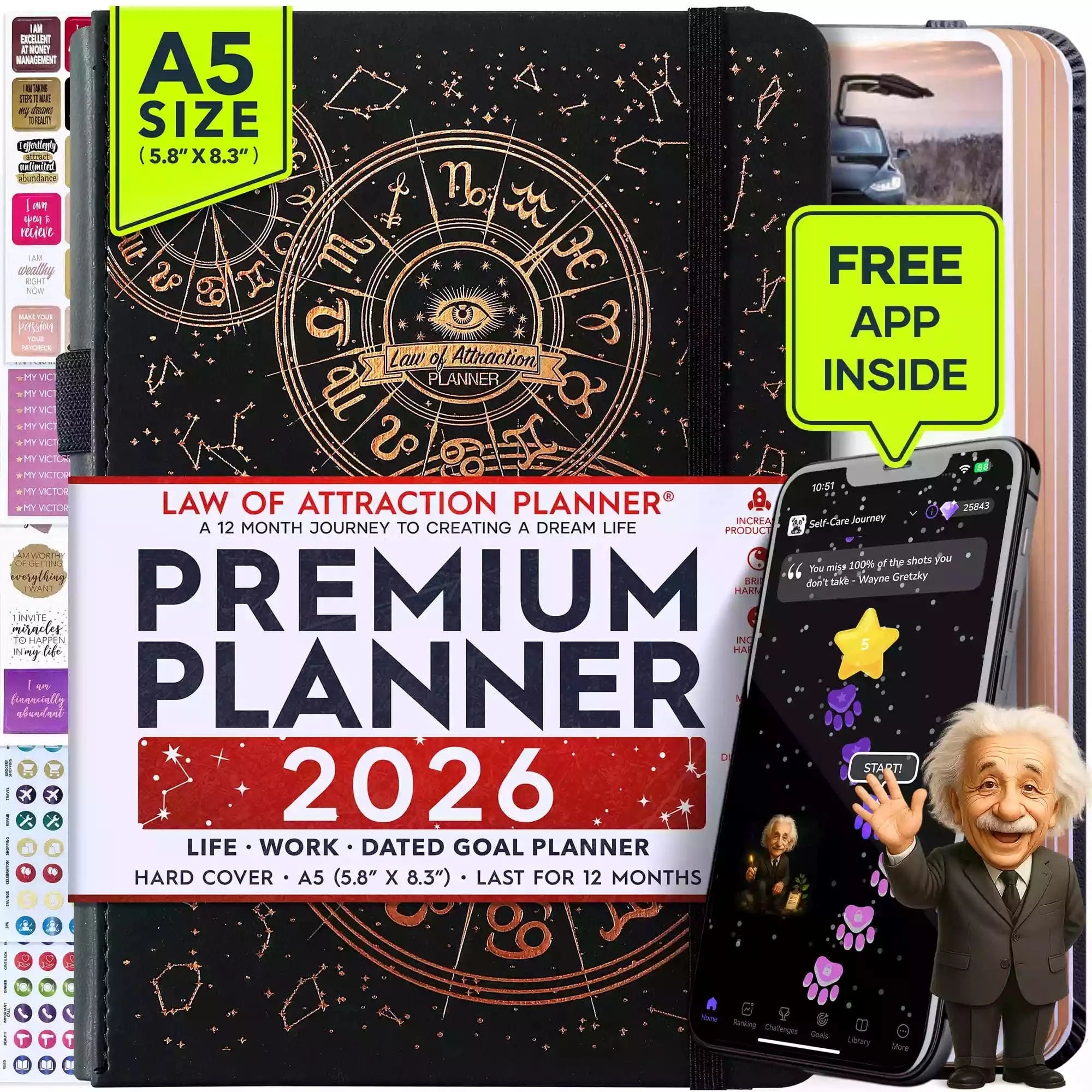 PRE-ORDER: Jan - Dec 2026 Dated Monday Start Deluxe LOA 12 Month Planner (A5 Size: 6 x 8.5 inches) Black Covers