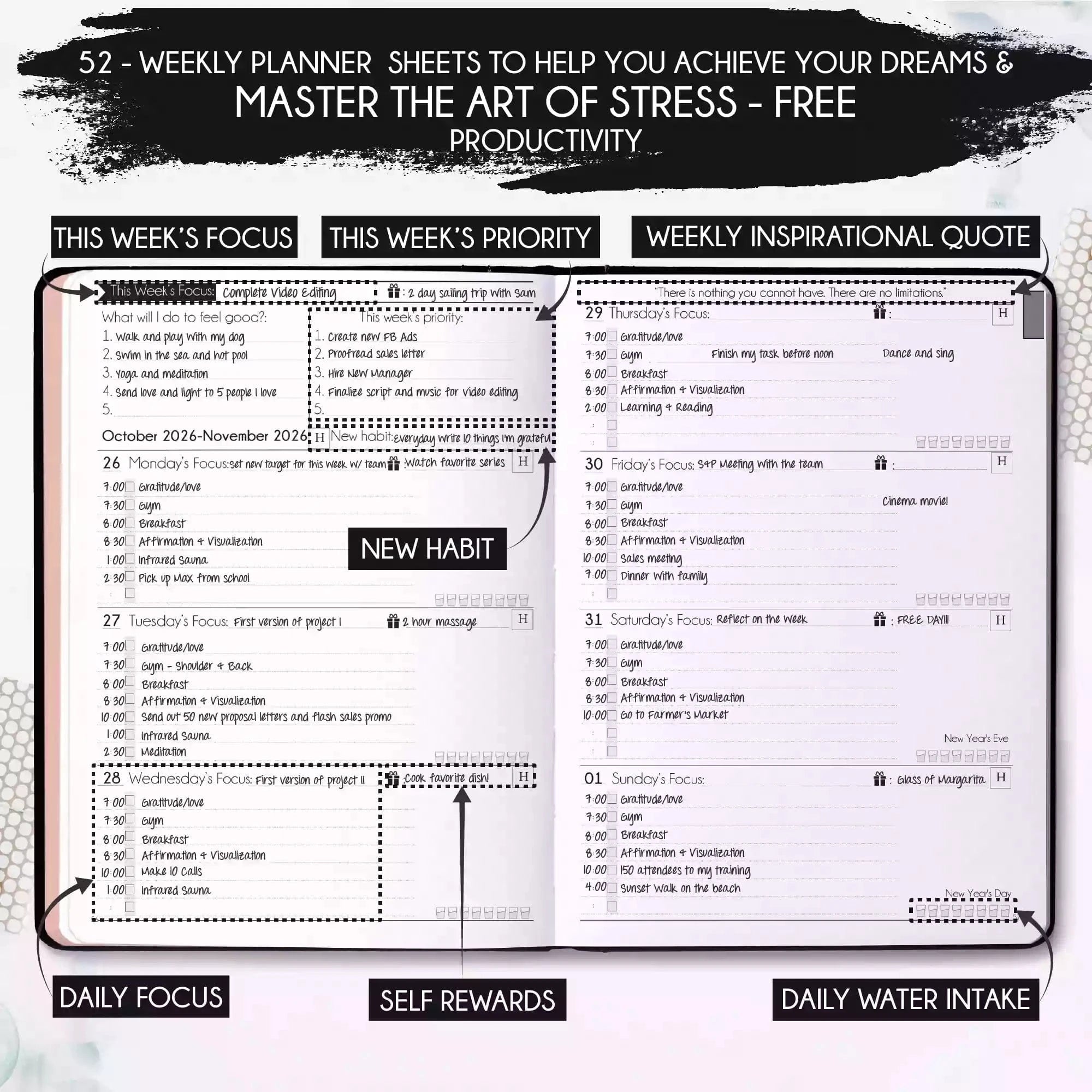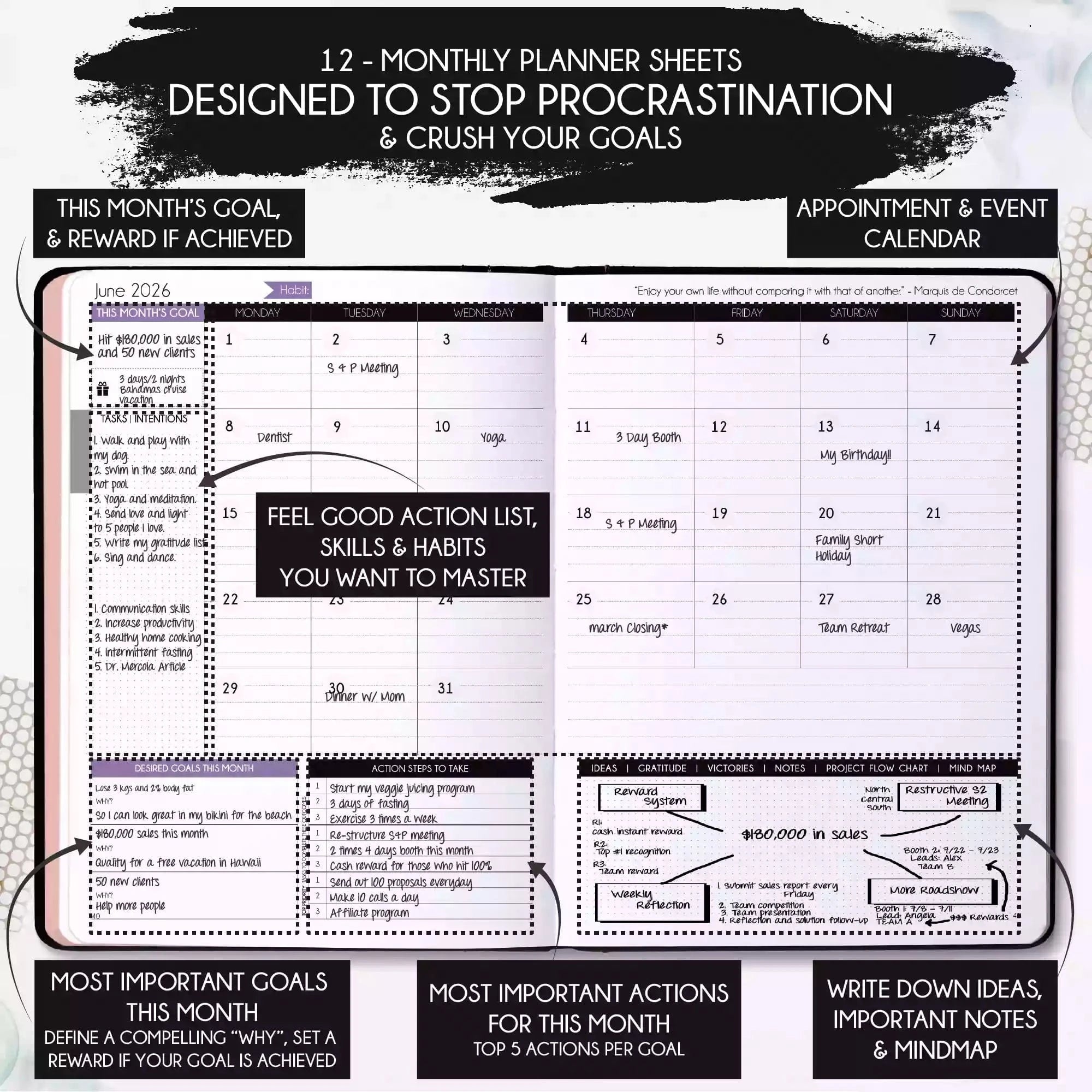 💎 NEW! Improvements in Design: Modern, chic and stylistic to make you feel proud of owning and utilizing the planner.