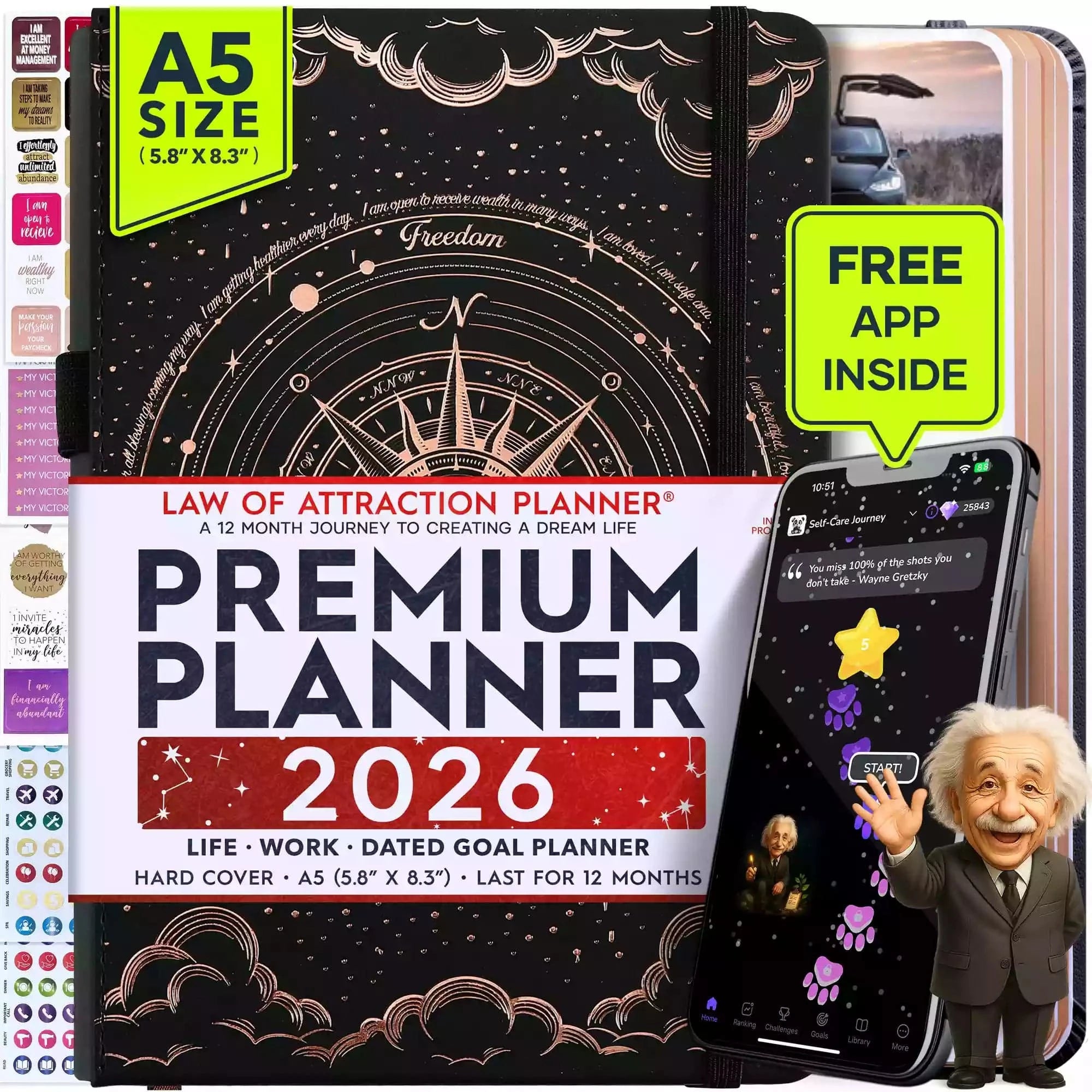 💎 CLASSIC + TOP QUALITY: Beautiful rose gold durable soft cover made from animal-friendly PU leather with artwork. Ideal for both women and men, perfect for entrepreneurs, professionals, college students and everyone who has burning desire to turn dreams into reality! FREE VIDEO MINI-COURSE: You will learn a 10-minute morning routine used by the most successful people to tenfold your productivity, focus, happiness, and passion! You will master setting goals and fix procrastination!