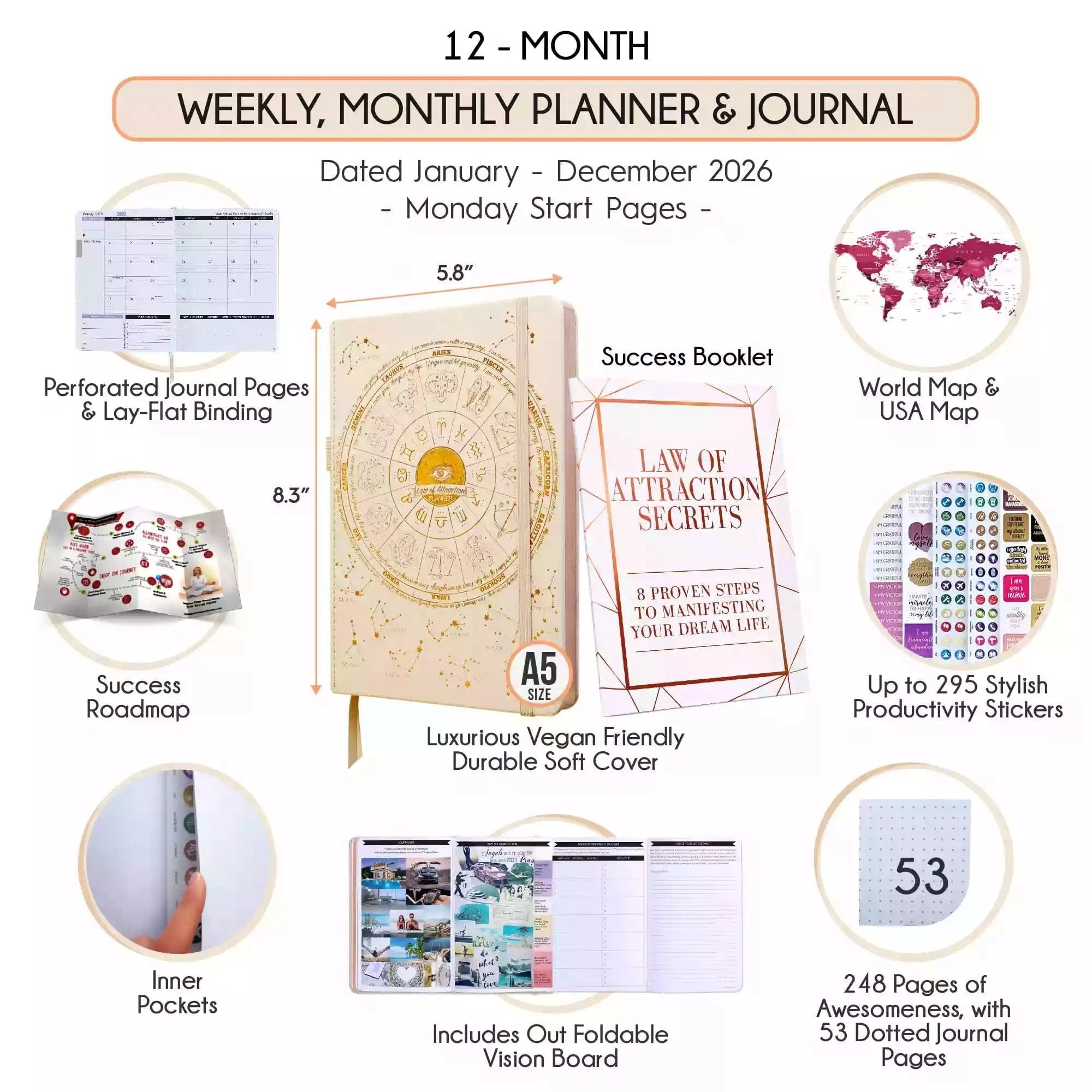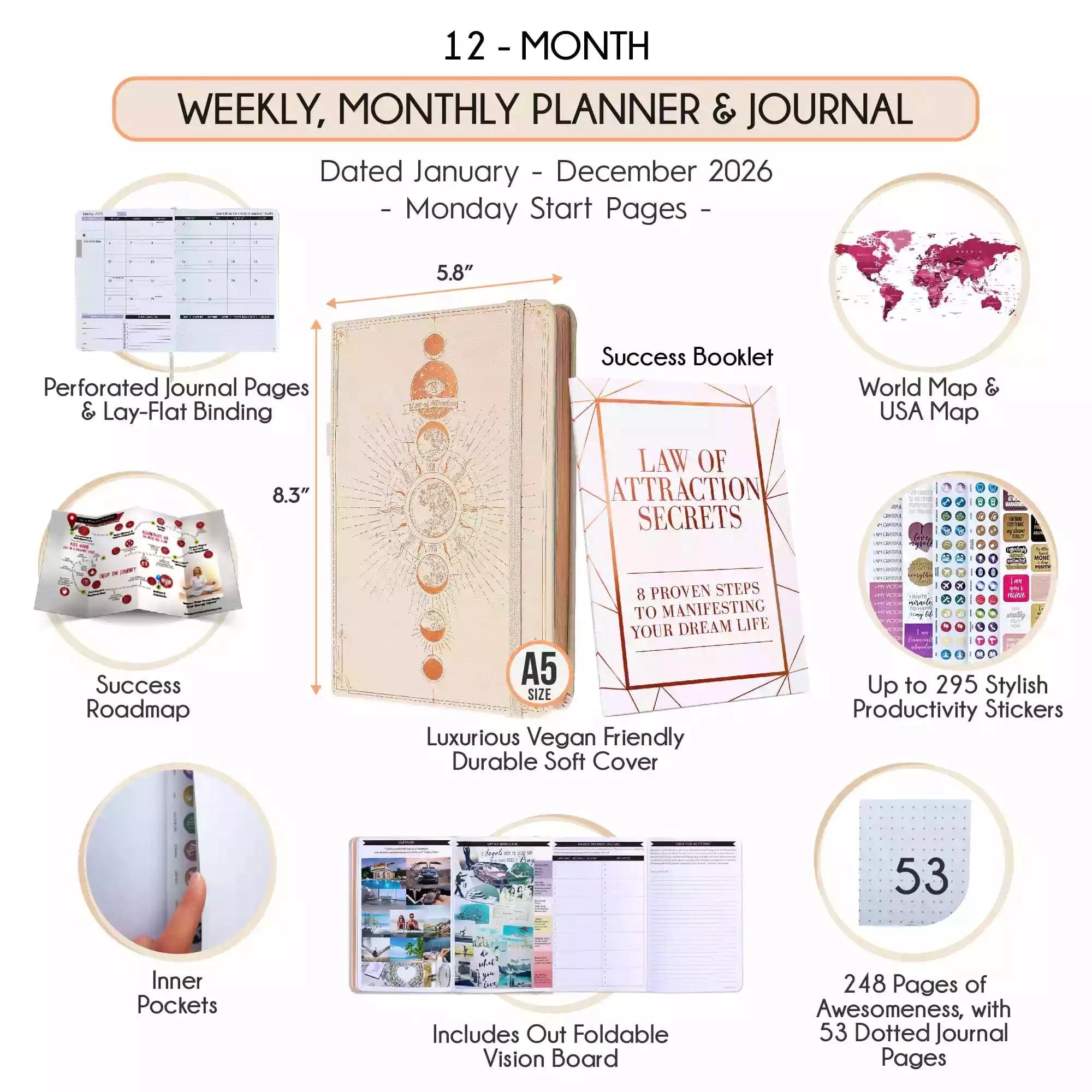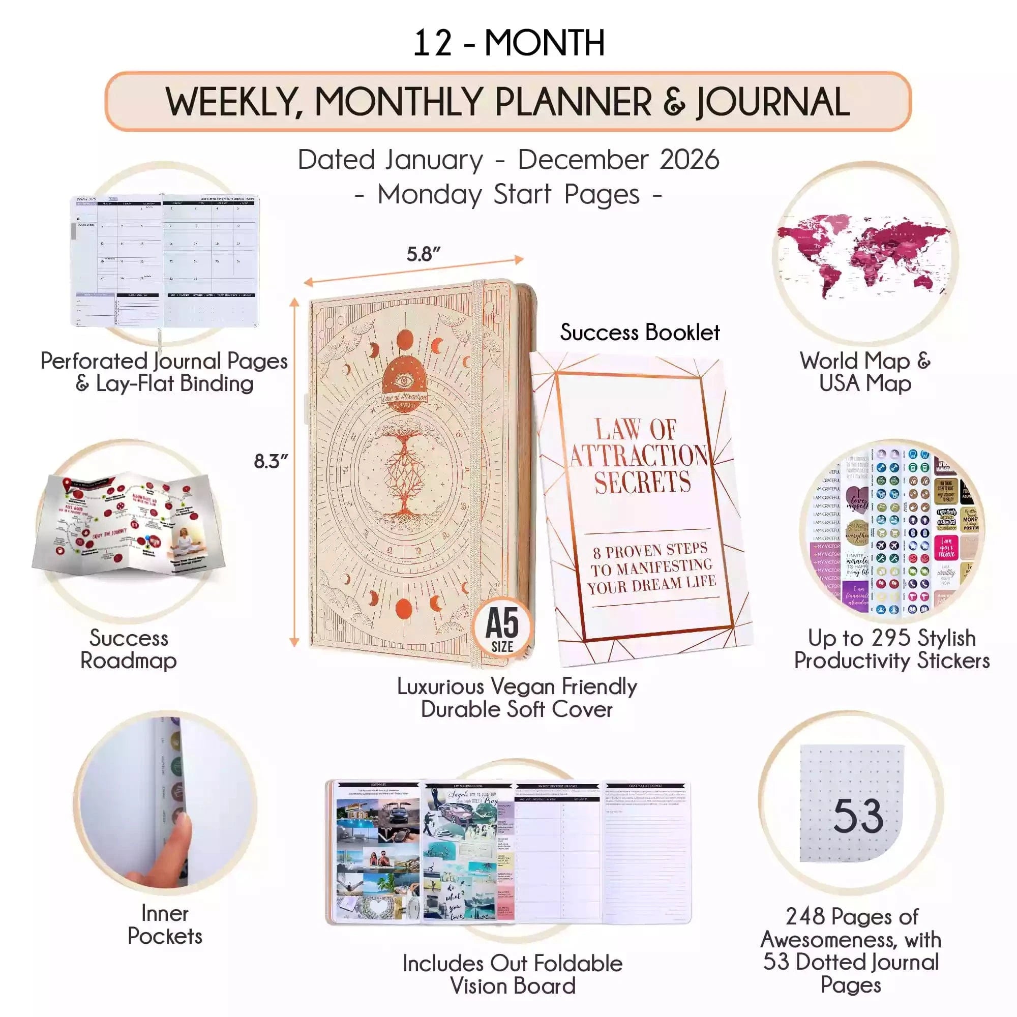 PRE-ORDER: Jan - Dec 2026 Dated Monday Start Deluxe LOA 12 Month Planner (A5 Size: 6 x 8.5 inches) Regular Covers