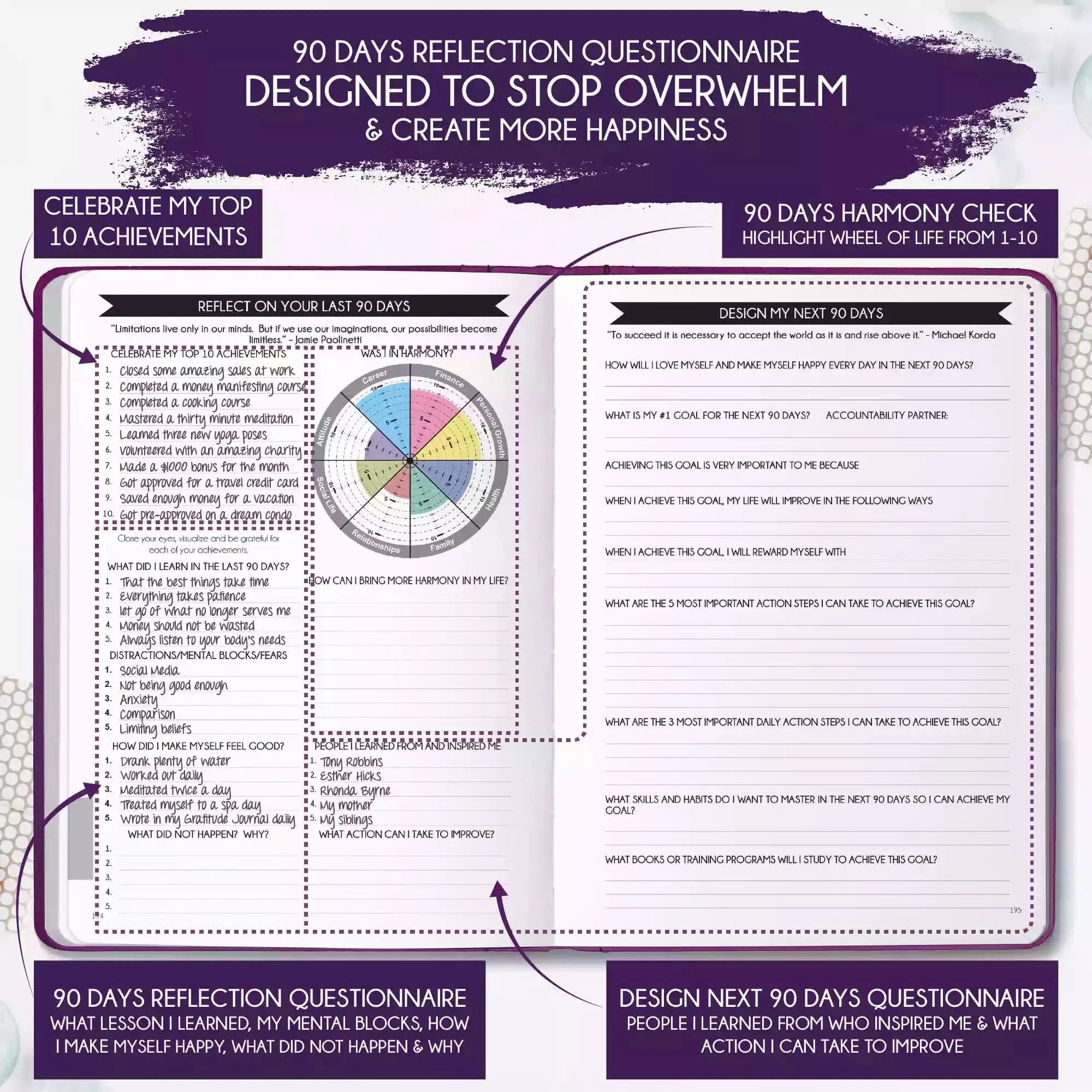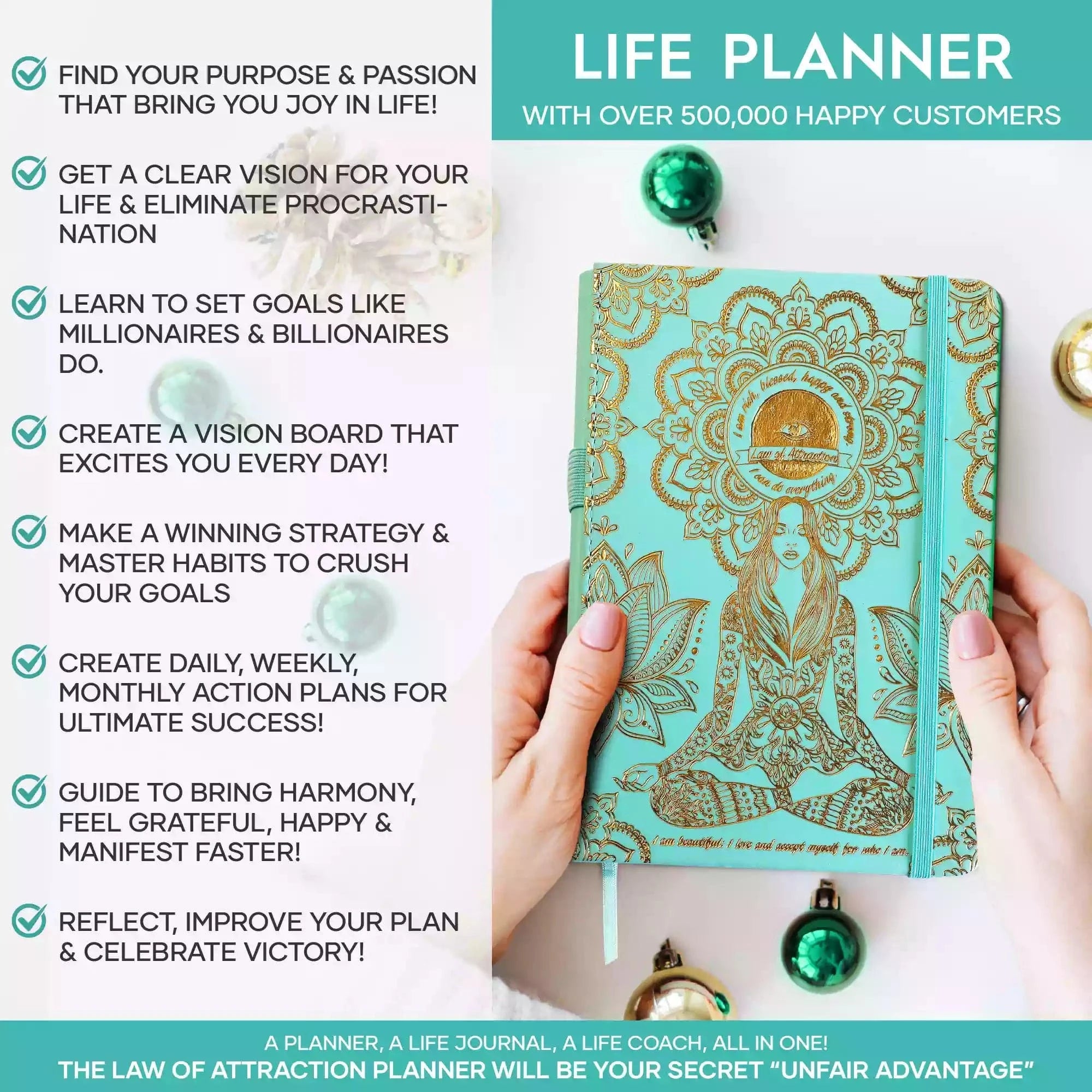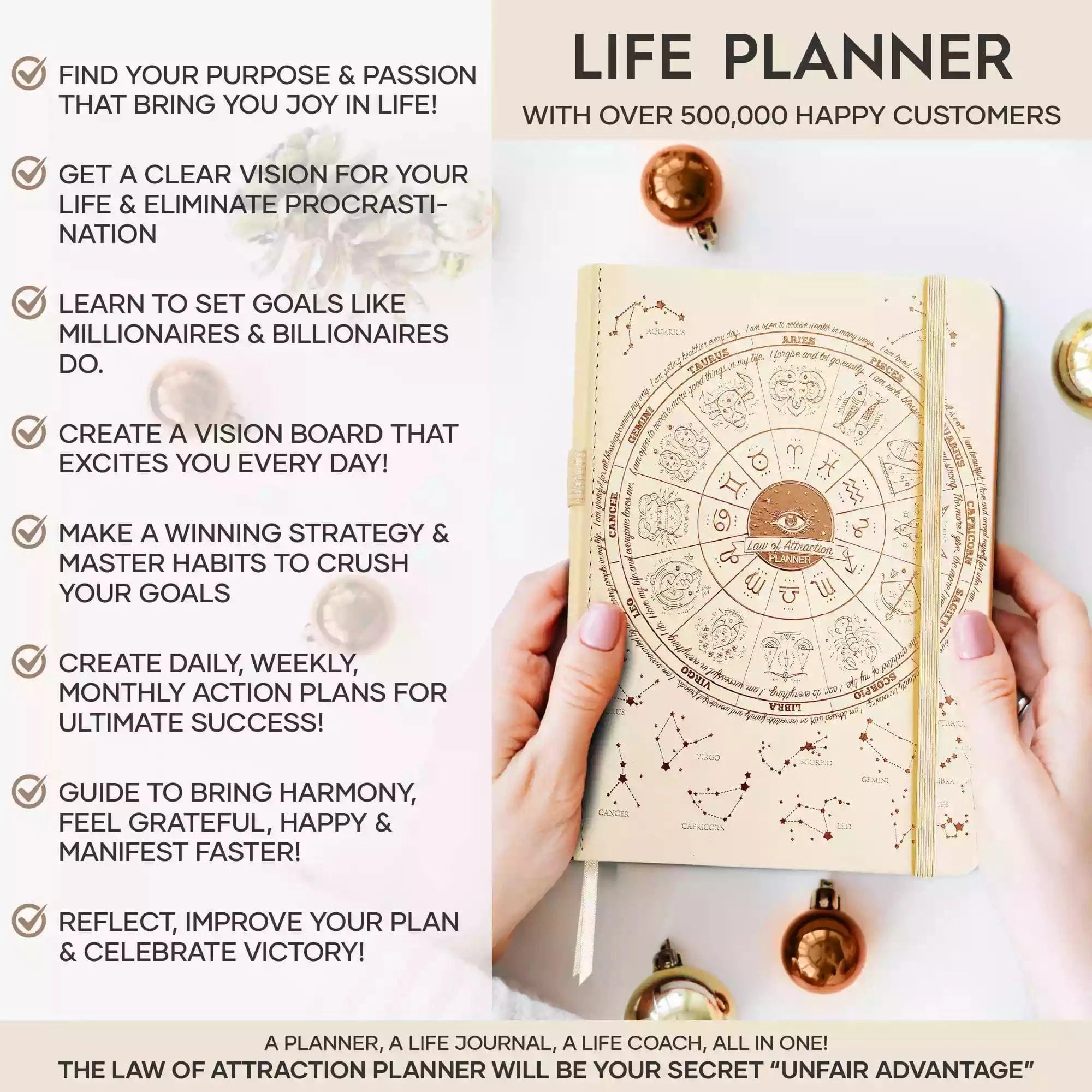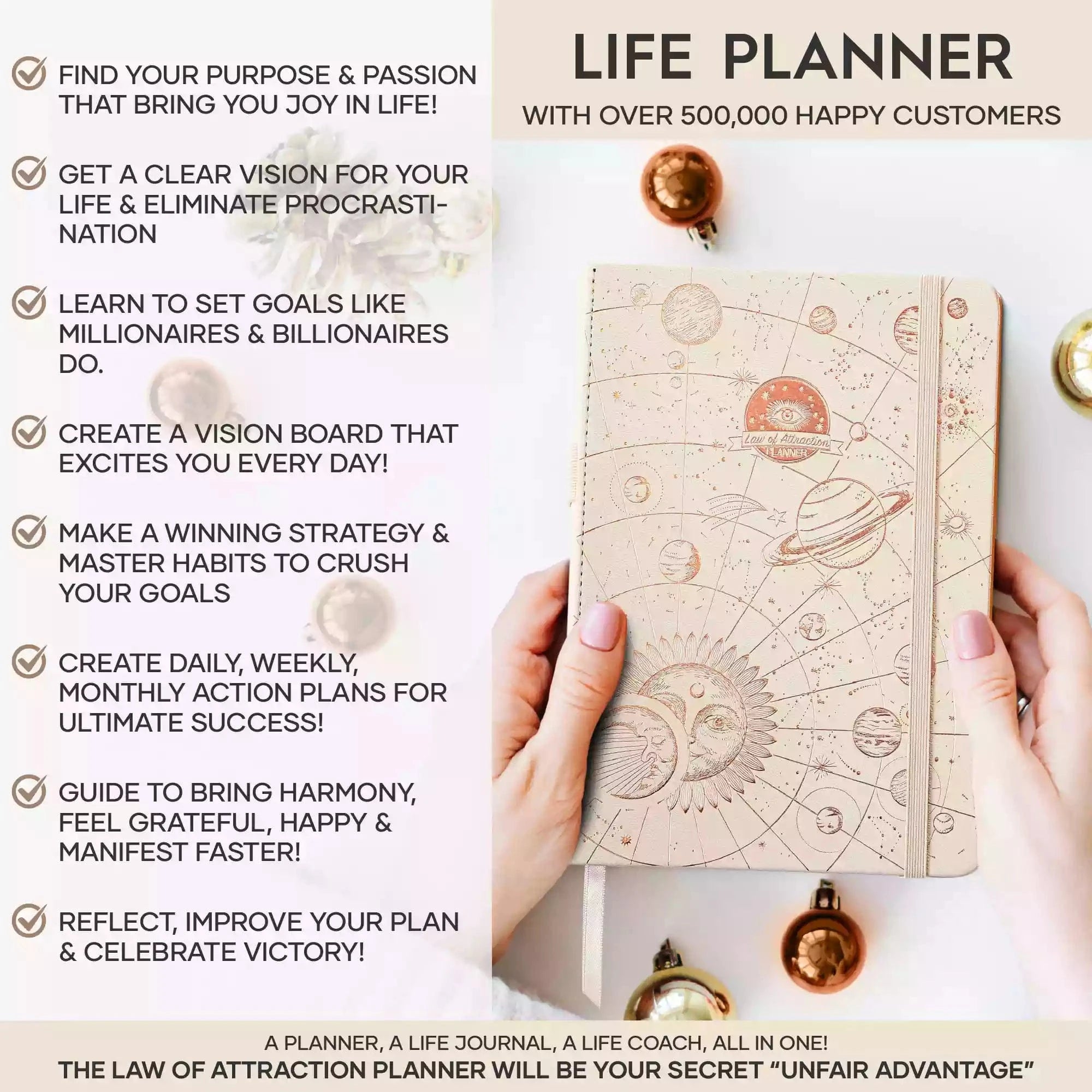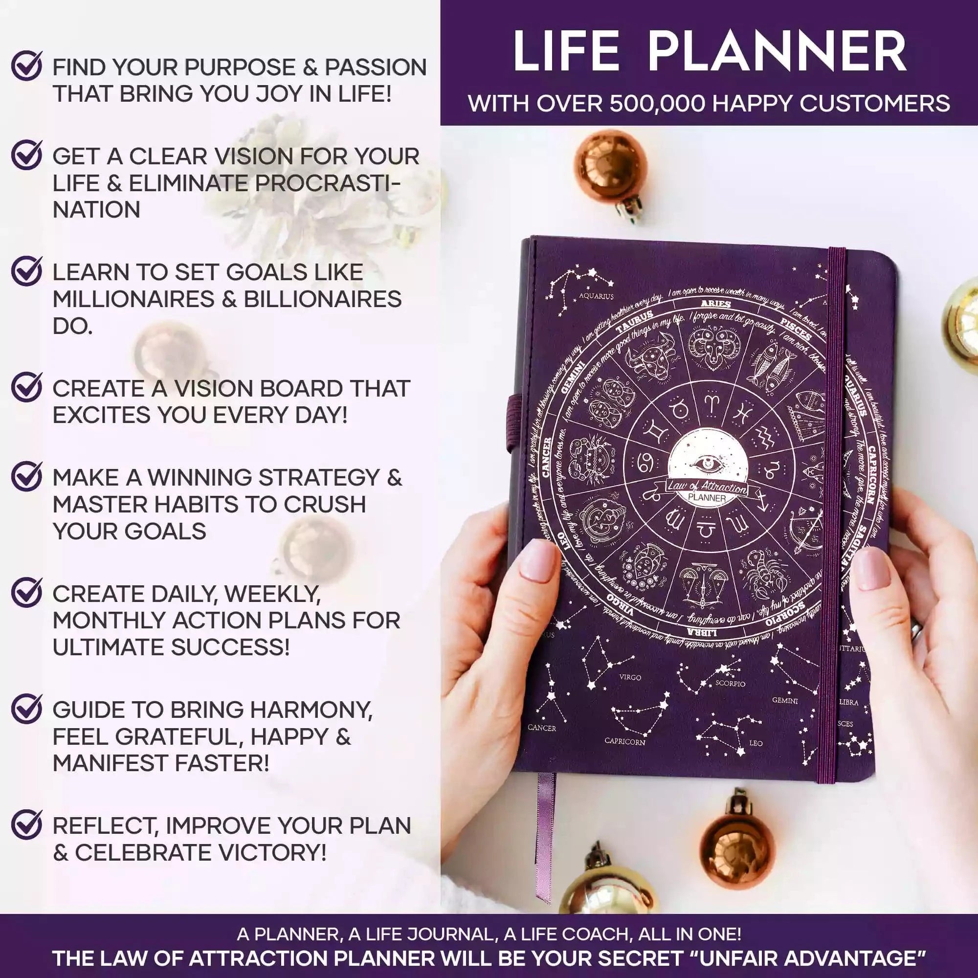 💎 ACHIEVE YOUR GOALS AND IMPROVE TIME MANAGEMENT - Learn How To Set Big Goals and achieve them by improving your time management - Follow the same methods millionaires and billionaires around the world follow to set goals and achieve them. You will be amazed by the results if you follow the 8 steps in this planner! FIND YOUR LIFE PURPOSE AND LIVE YOUR PASSION - Discover what you truly want in your life. Following your passion and purpose will give you more joy than you ever imagined.