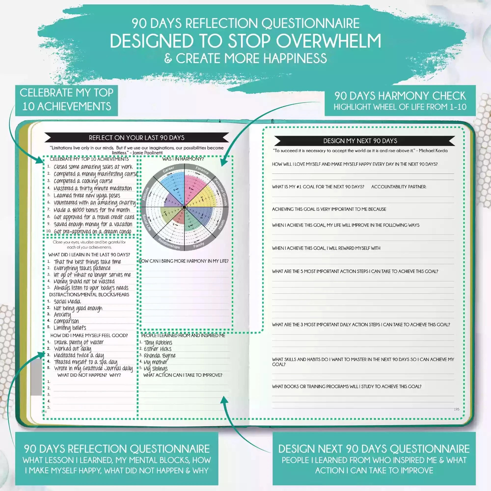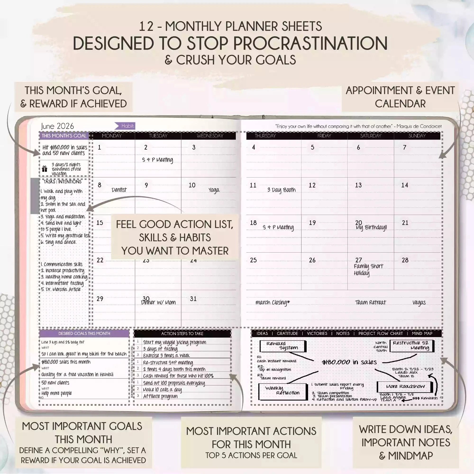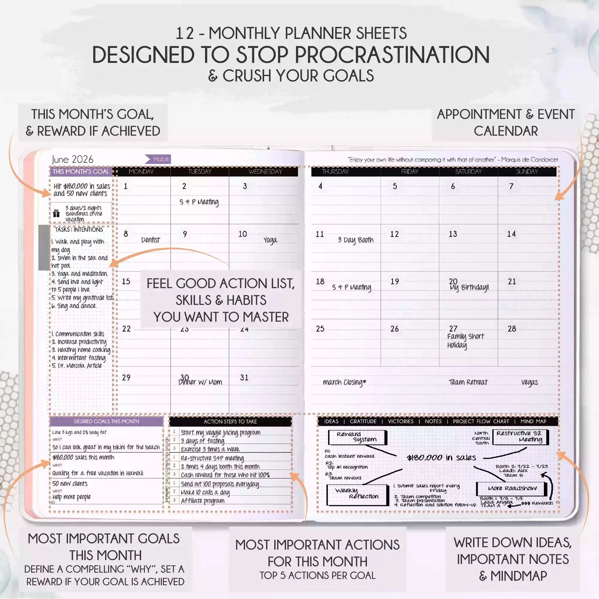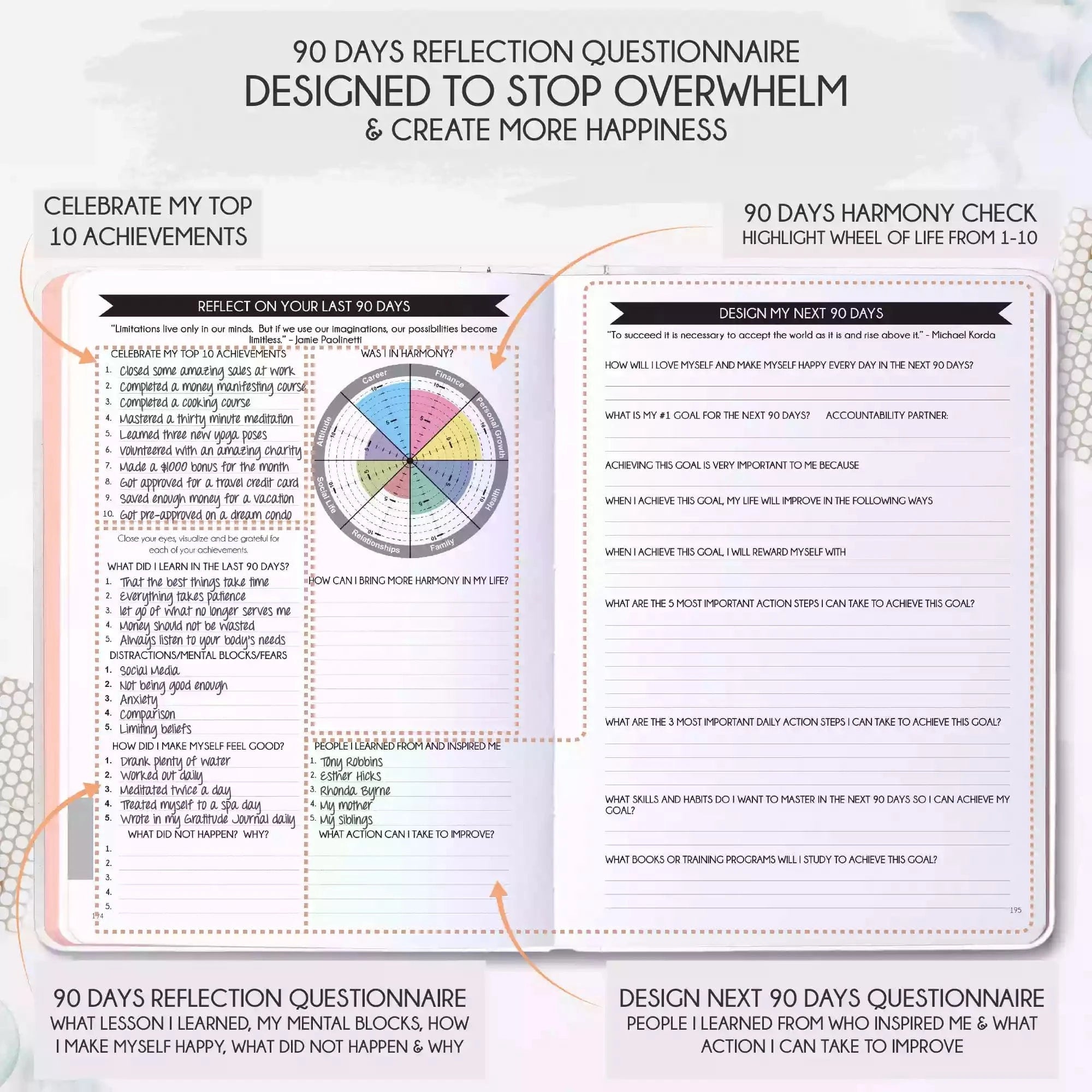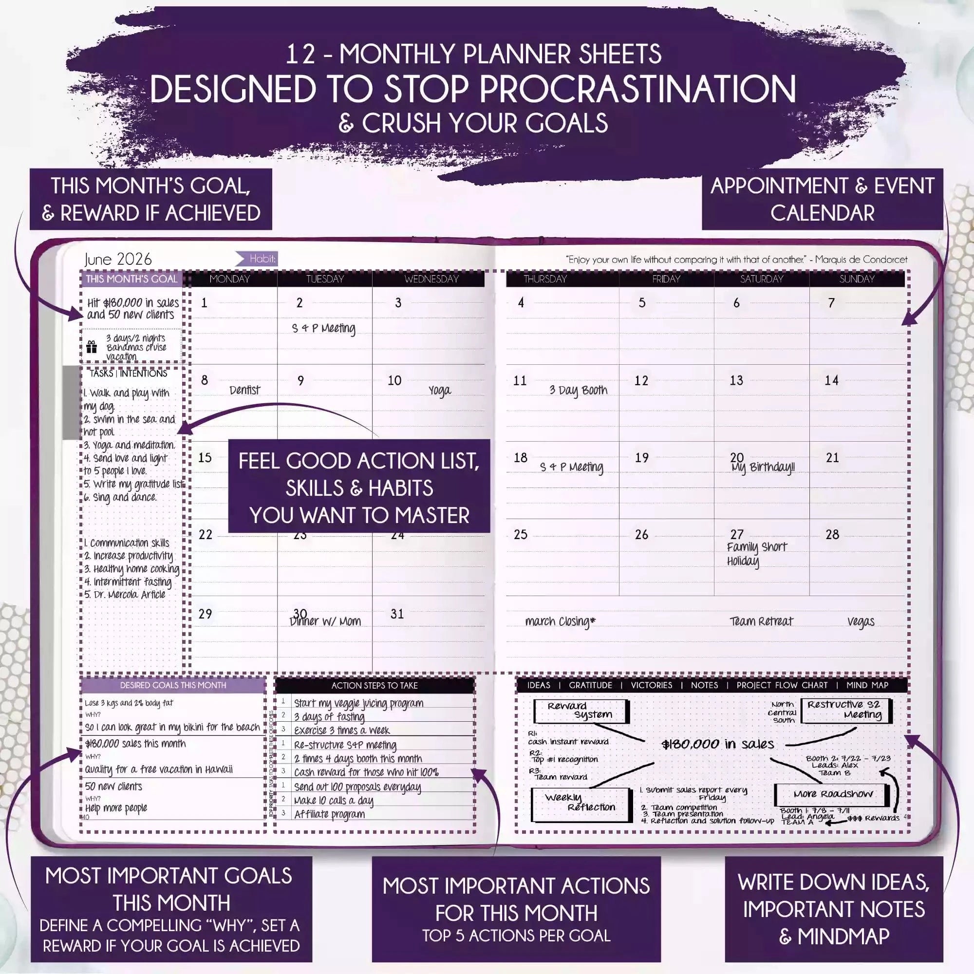 💎 ACHIEVE YOUR GOALS AND IMPROVE TIME MANAGEMENT - Learn How To Set Big Goals and achieve them by improving your time management - Follow the same methods millionaires and billionaires around the world follow to set goals and achieve them. You will be amazed by the results if you follow the 8 steps in this planner! FIND YOUR LIFE PURPOSE AND LIVE YOUR PASSION - Discover what you truly want in your life. Following your passion and purpose will give you more joy than you ever imagined.