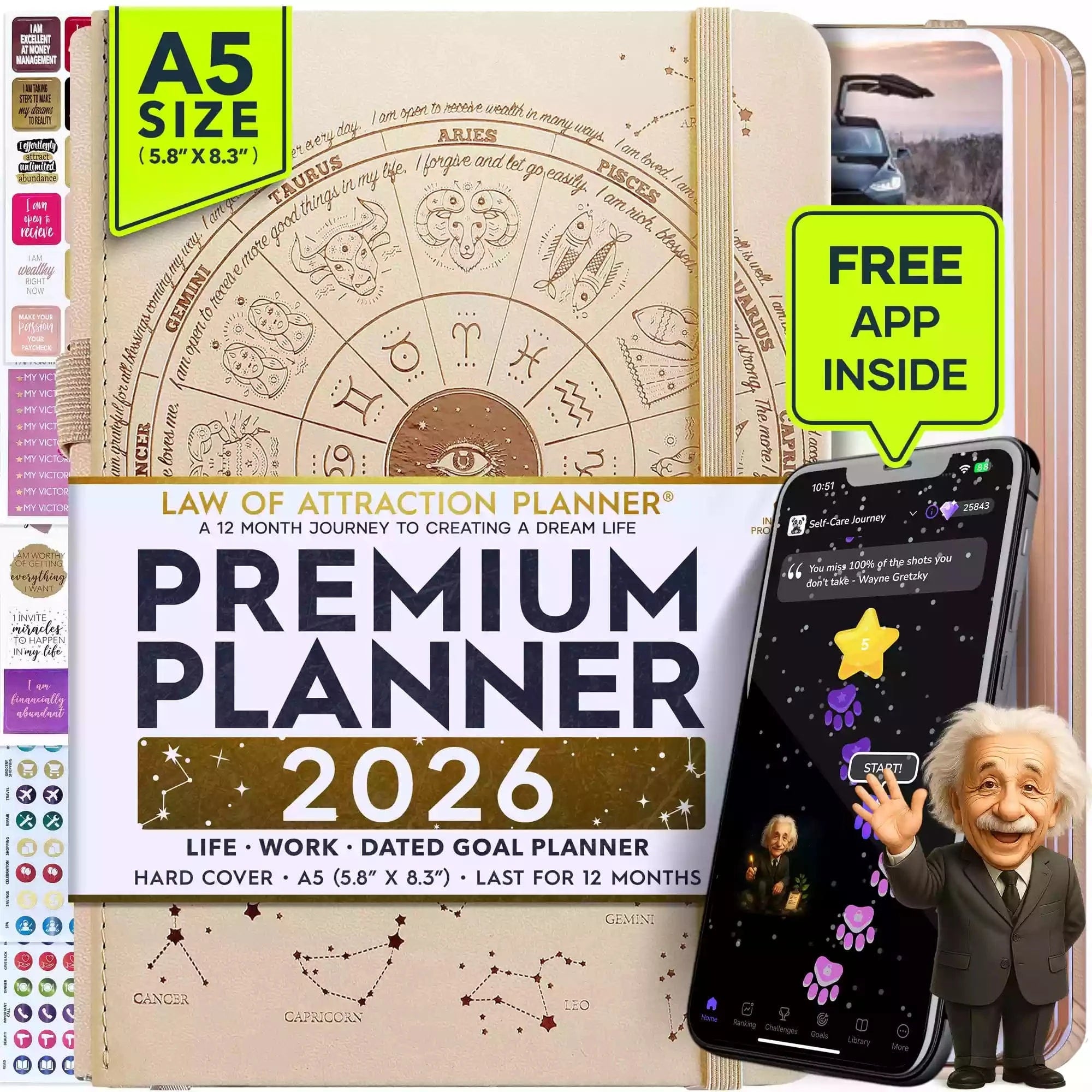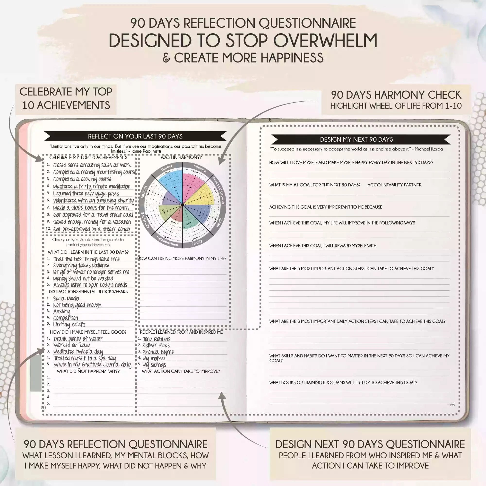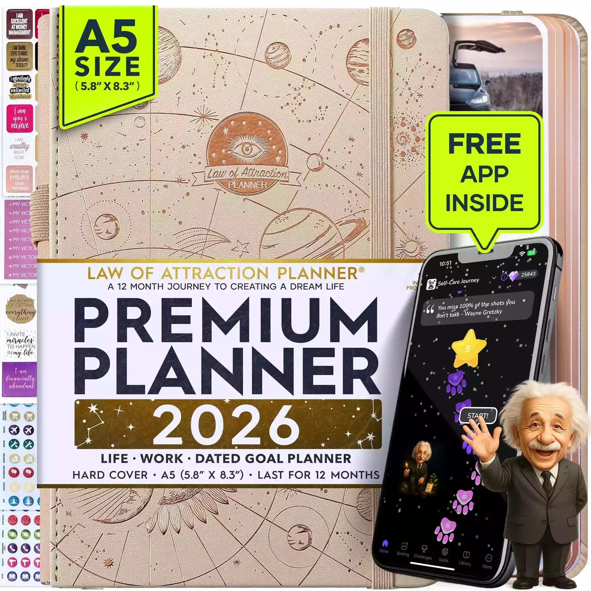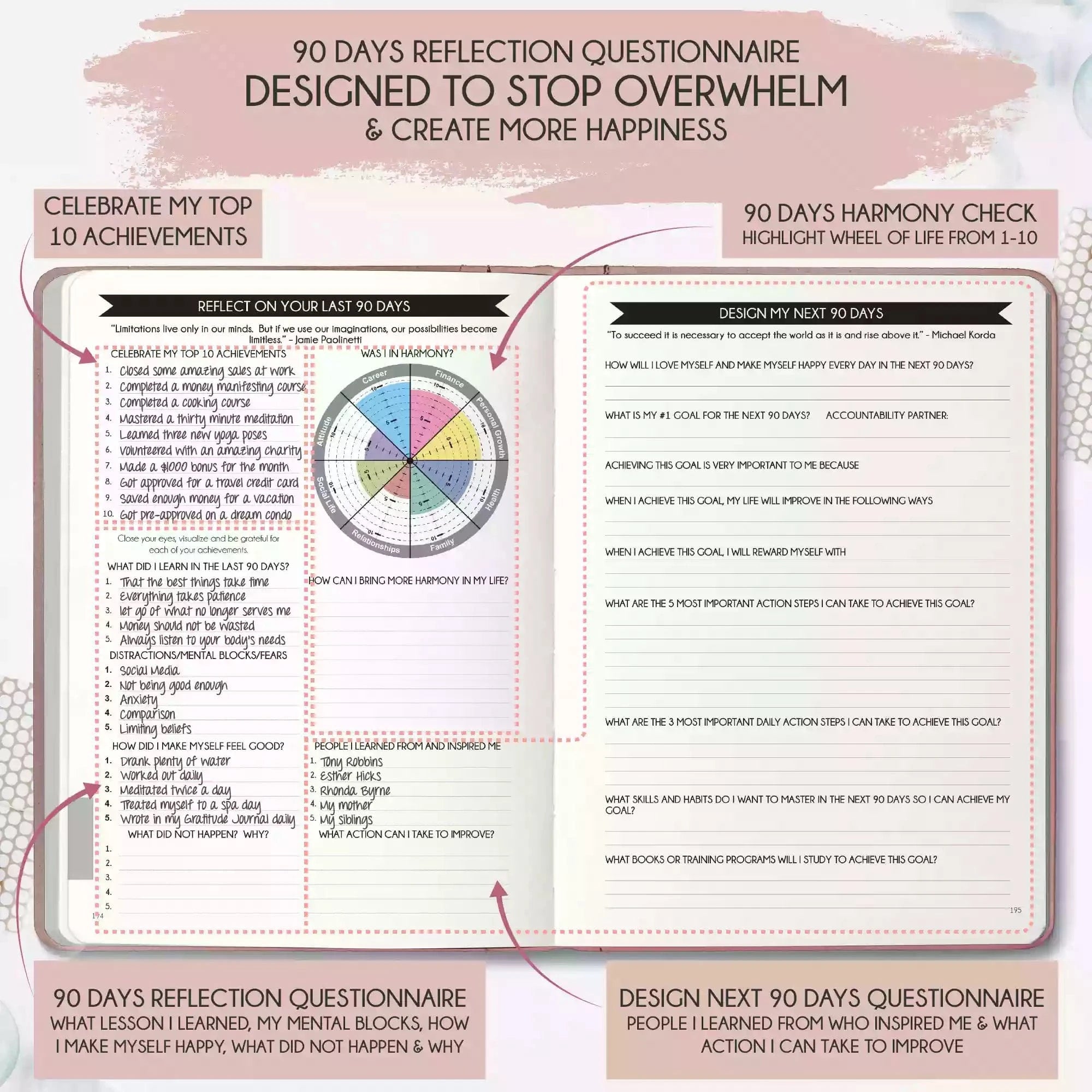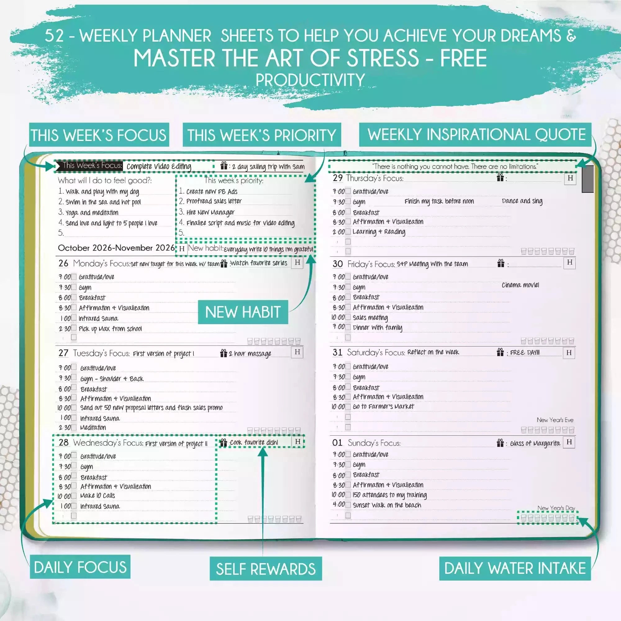💎 CLASSIC + TOP QUALITY: Beautiful rose gold durable soft cover made from animal-friendly PU leather with artwork. Ideal for both women and men, perfect for entrepreneurs, professionals, college students and everyone who has burning desire to turn dreams into reality! FREE VIDEO MINI-COURSE: You will learn a 10-minute morning routine used by the most successful people to tenfold your productivity, focus, happiness, and passion! You will master setting goals and fix procrastination!