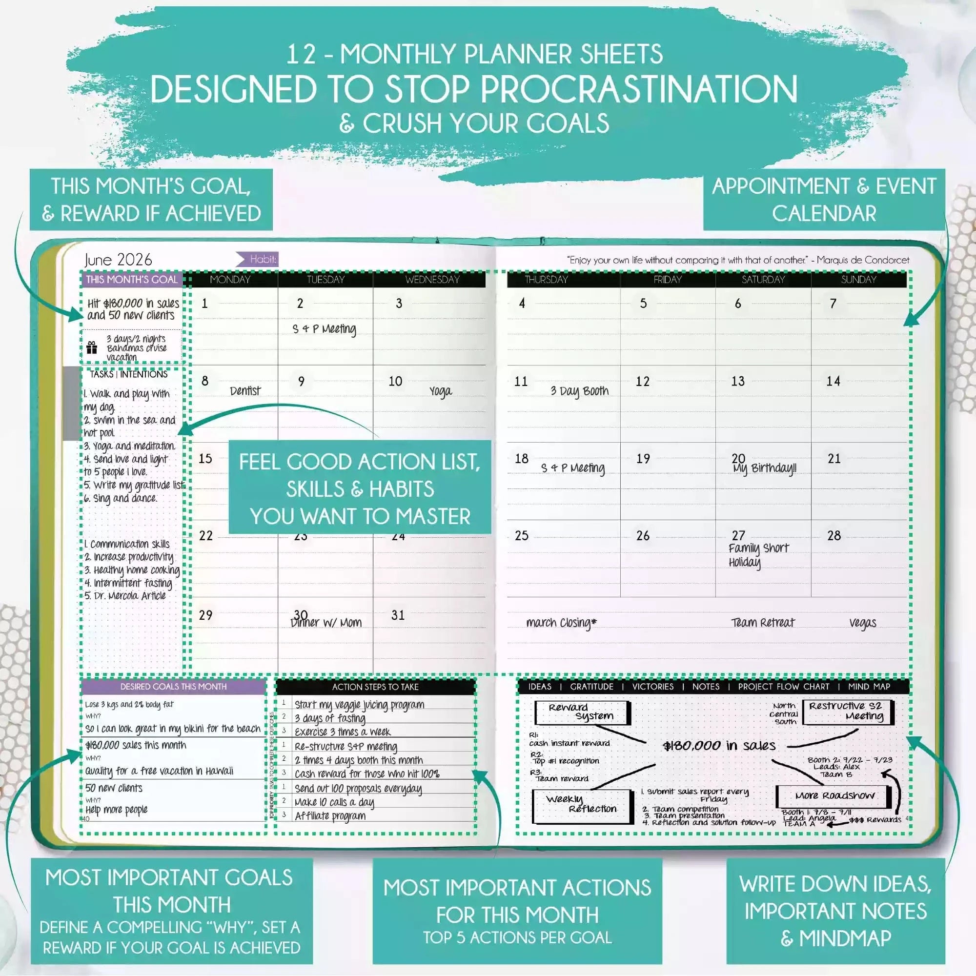 💎 NEW! Perforated pages in the back of the planner so you can easily tear off important notes.