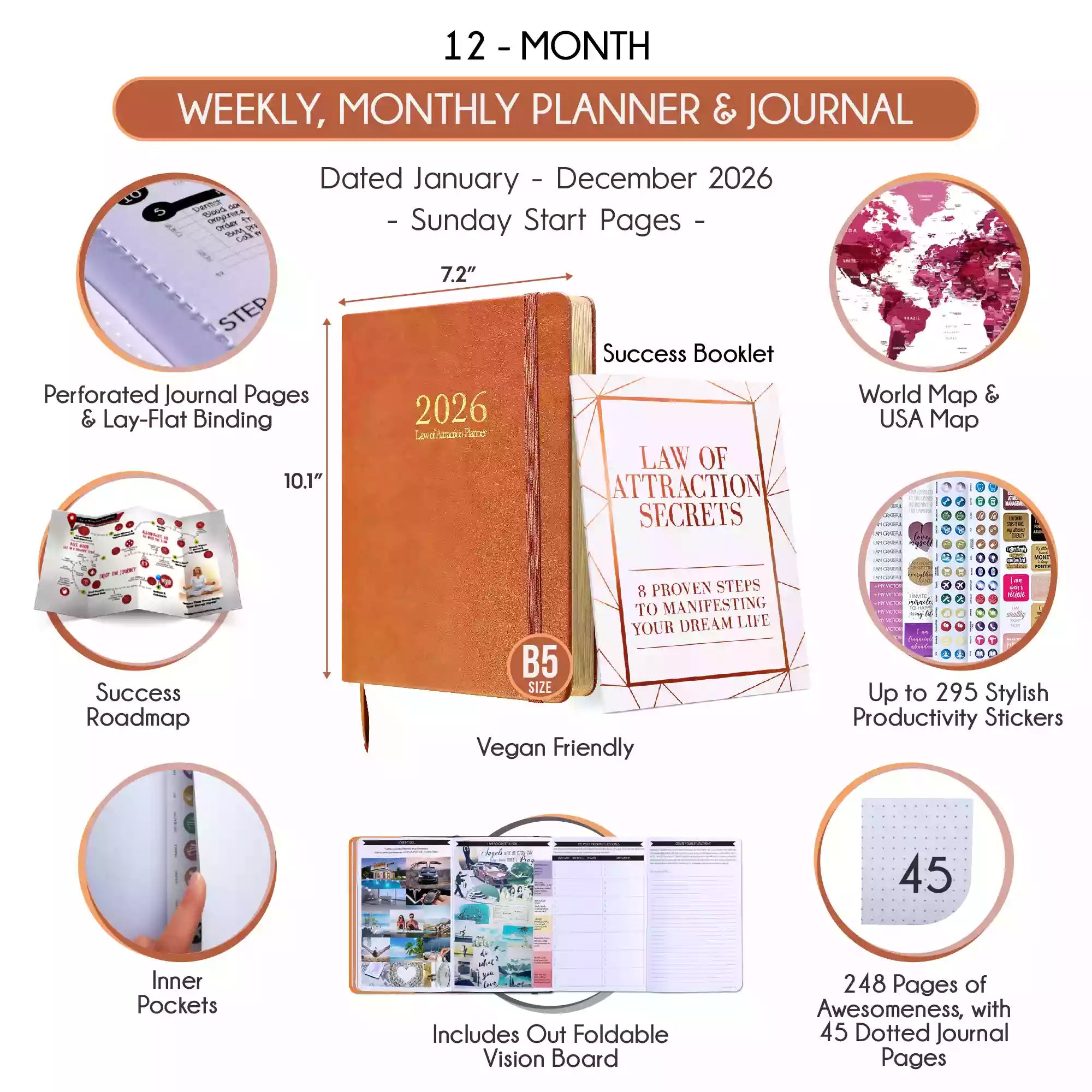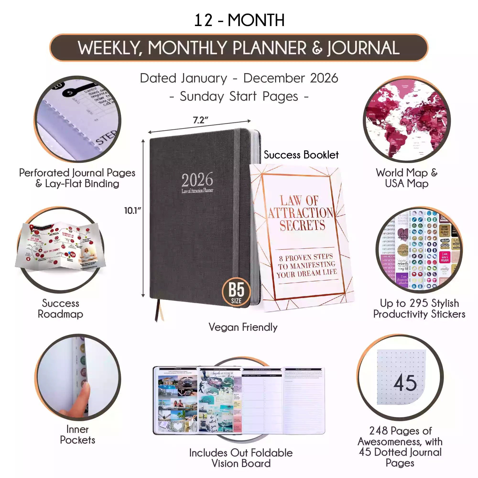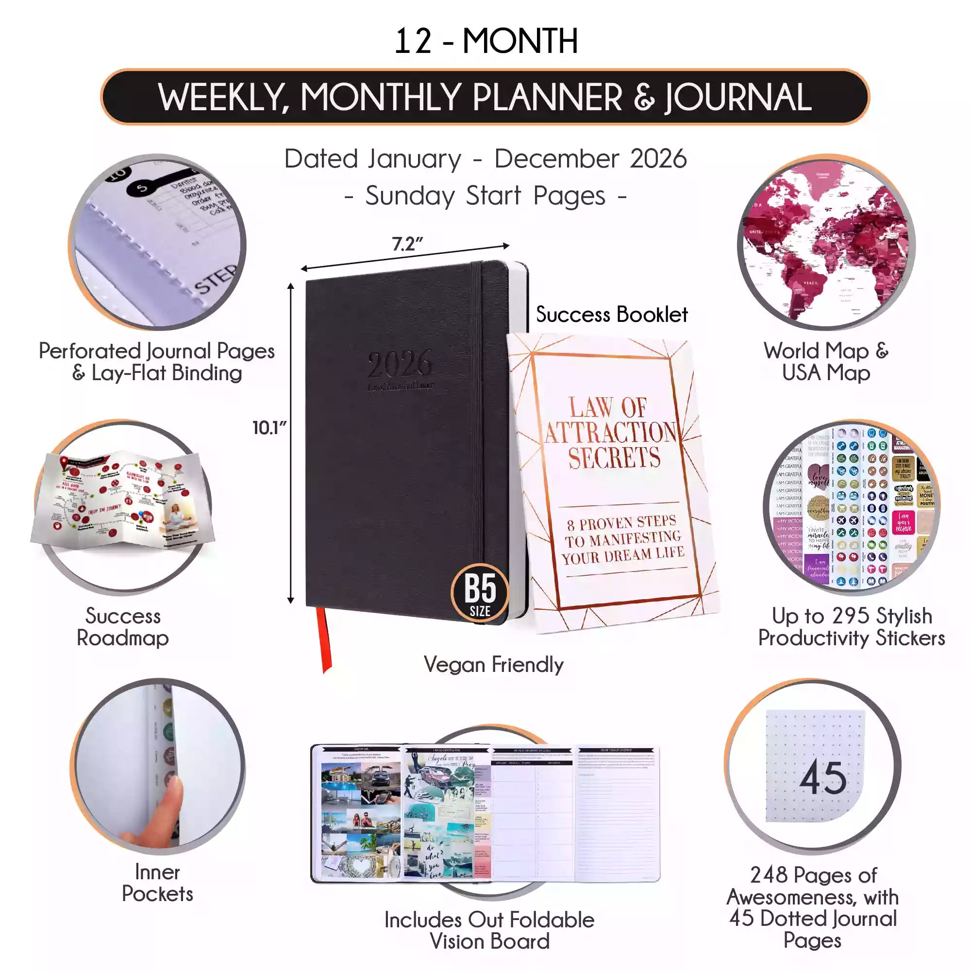 💎 Calendar Sunday starts Jan - Dec 2026. B5 size: 7.5 x 10 inches.
