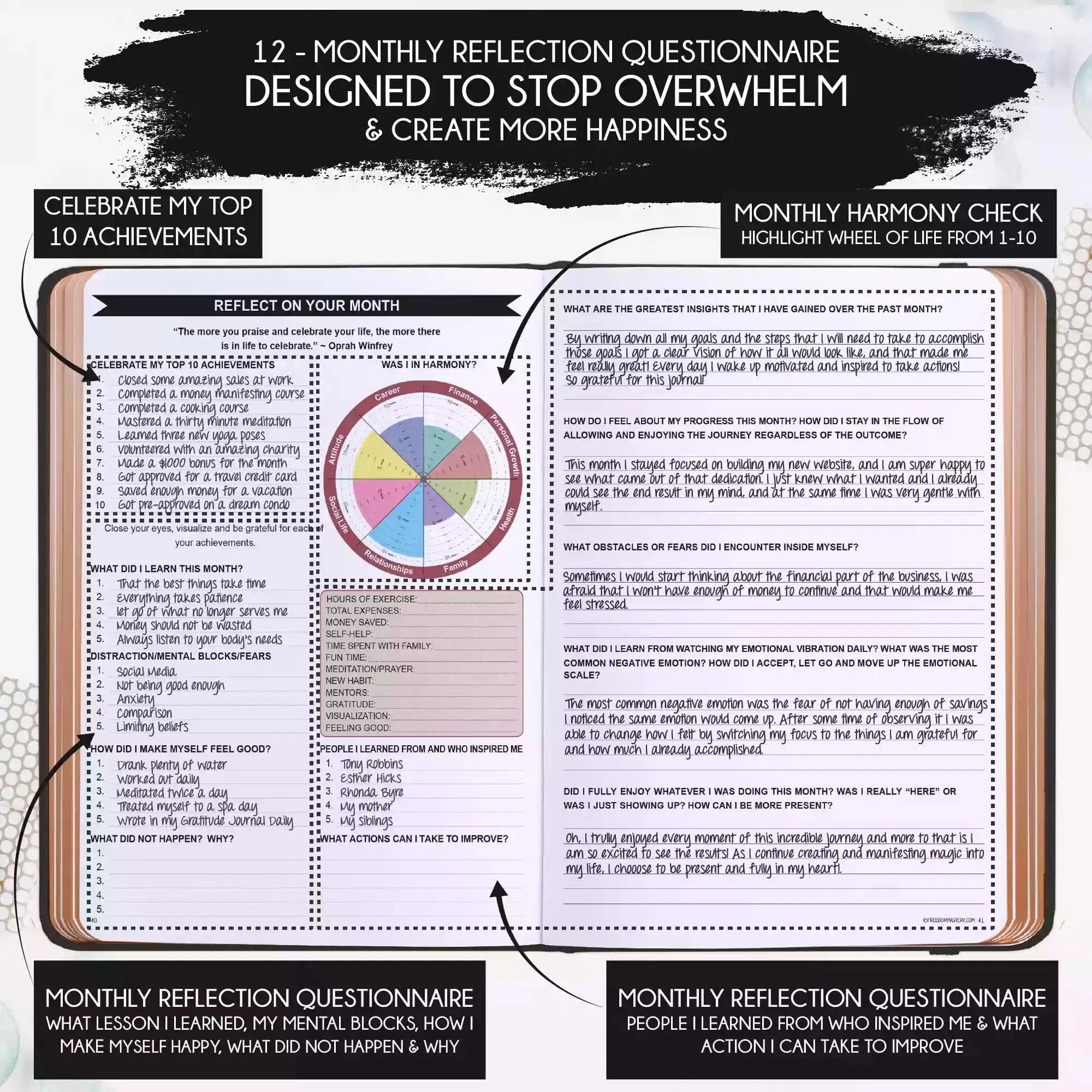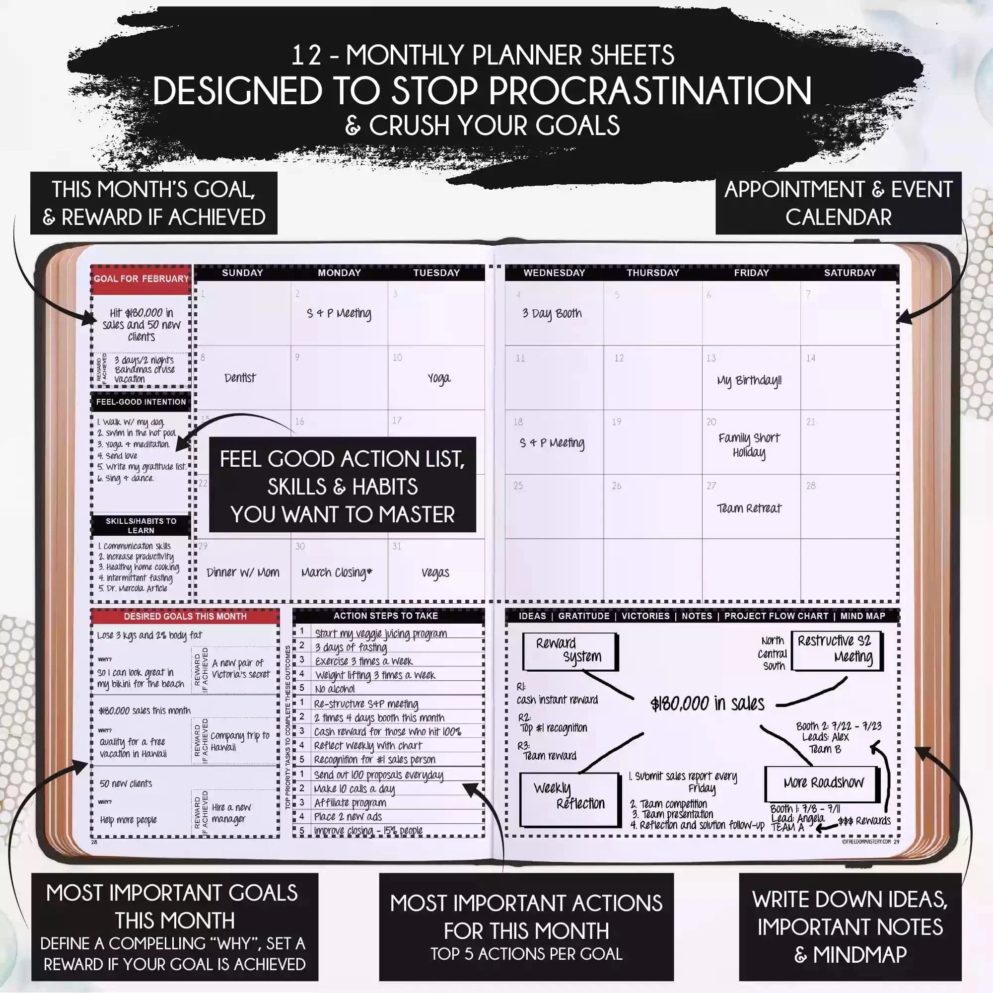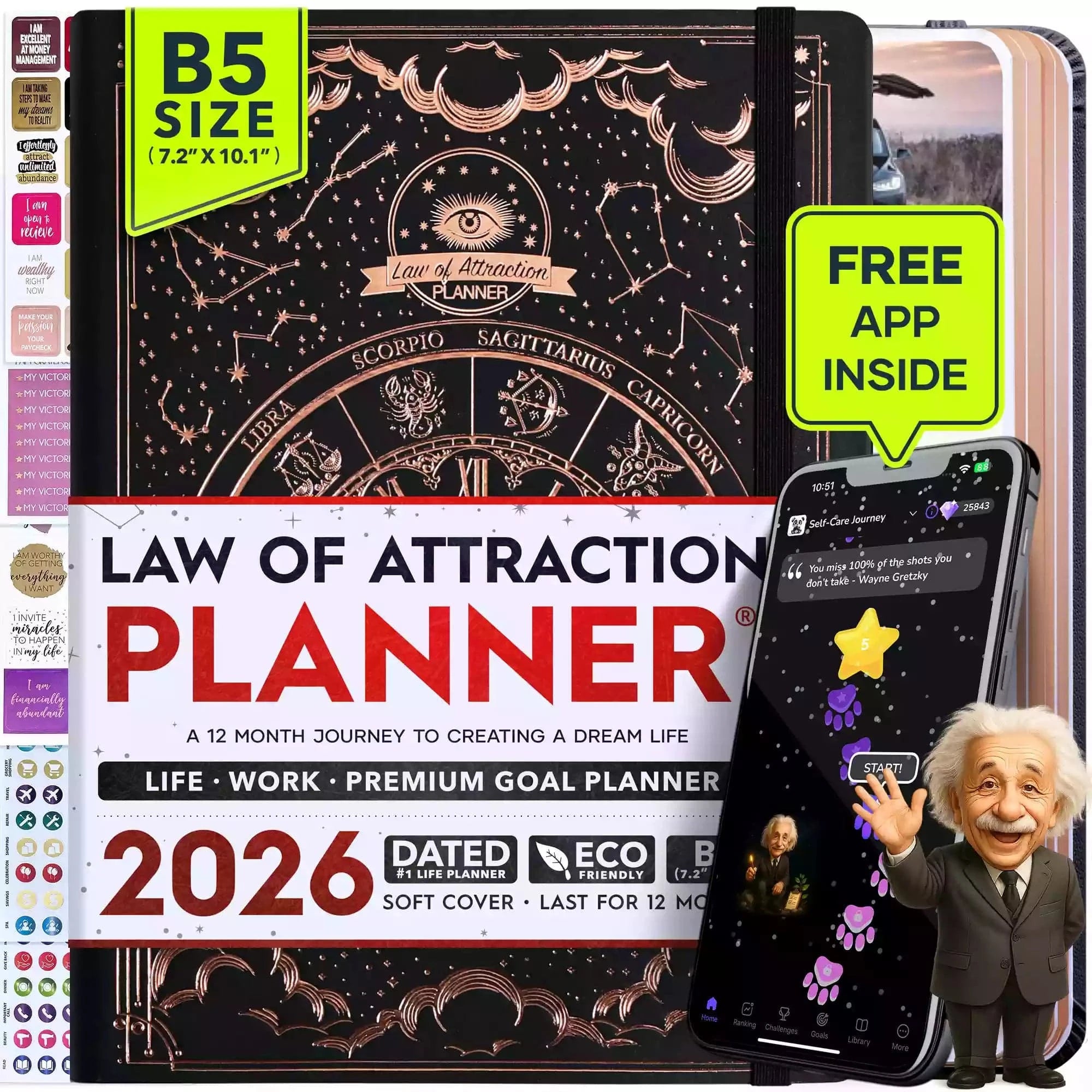 💎 CLASSIC + TOP QUALITY: Beautiful rose gold durable soft cover made from animal-friendly PU leather with artwork. Ideal for both women and men, perfect for entrepreneurs, professionals, college students and everyone who has burning desire to turn dreams into reality! FREE VIDEO MINI-COURSE: You will learn a 10-minute morning routine used by the most successful people to tenfold your productivity, focus, happiness, and passion! You will master setting goals and fix procrastination!